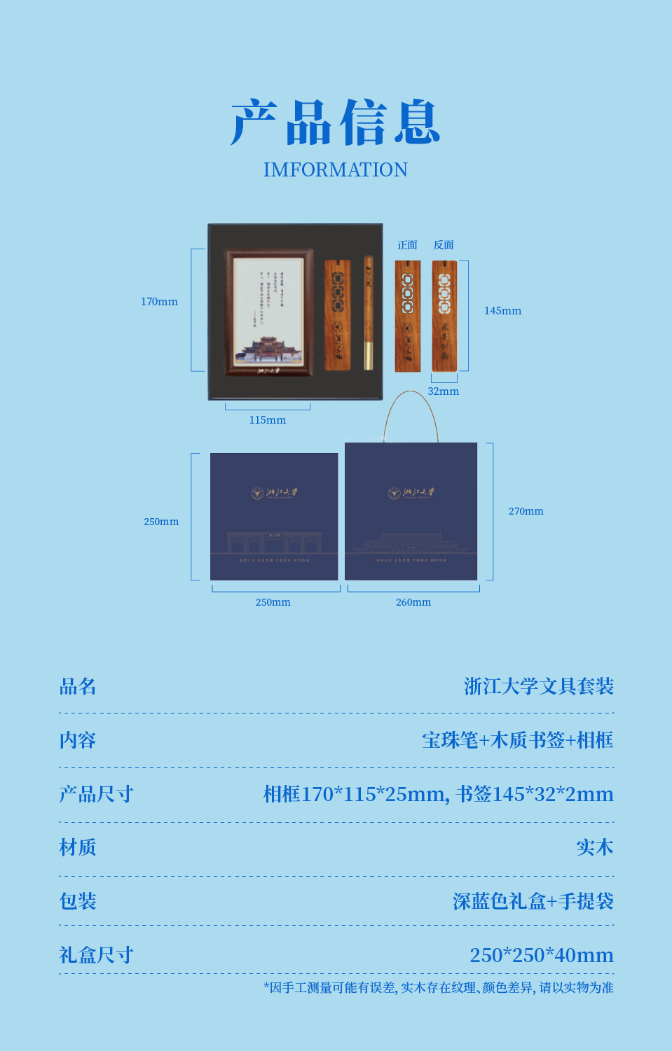 【浙大文创】浙江大学标识系列文具套装(宝珠笔+木质书签+相框)