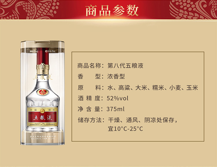 第八代五粮液 52度 浓香型白酒 375ml*2 双瓶装