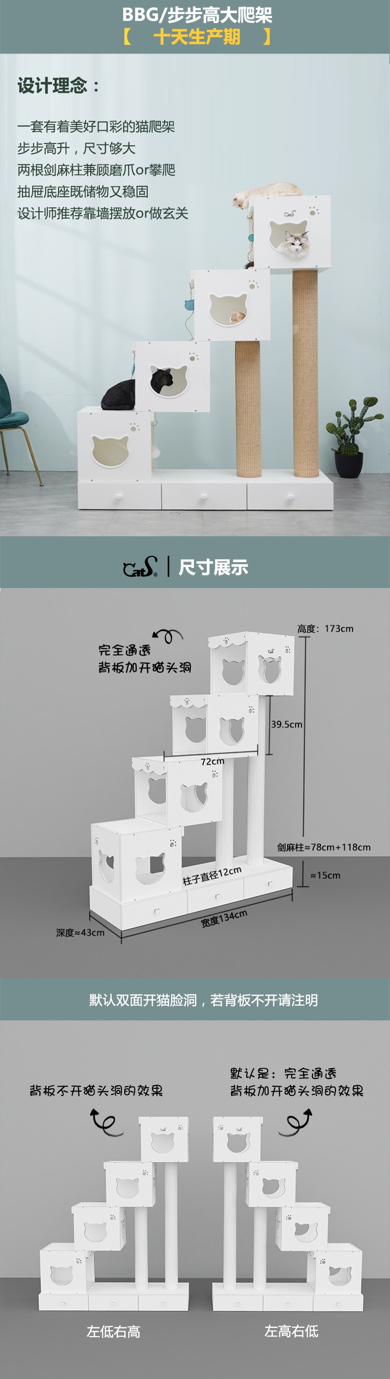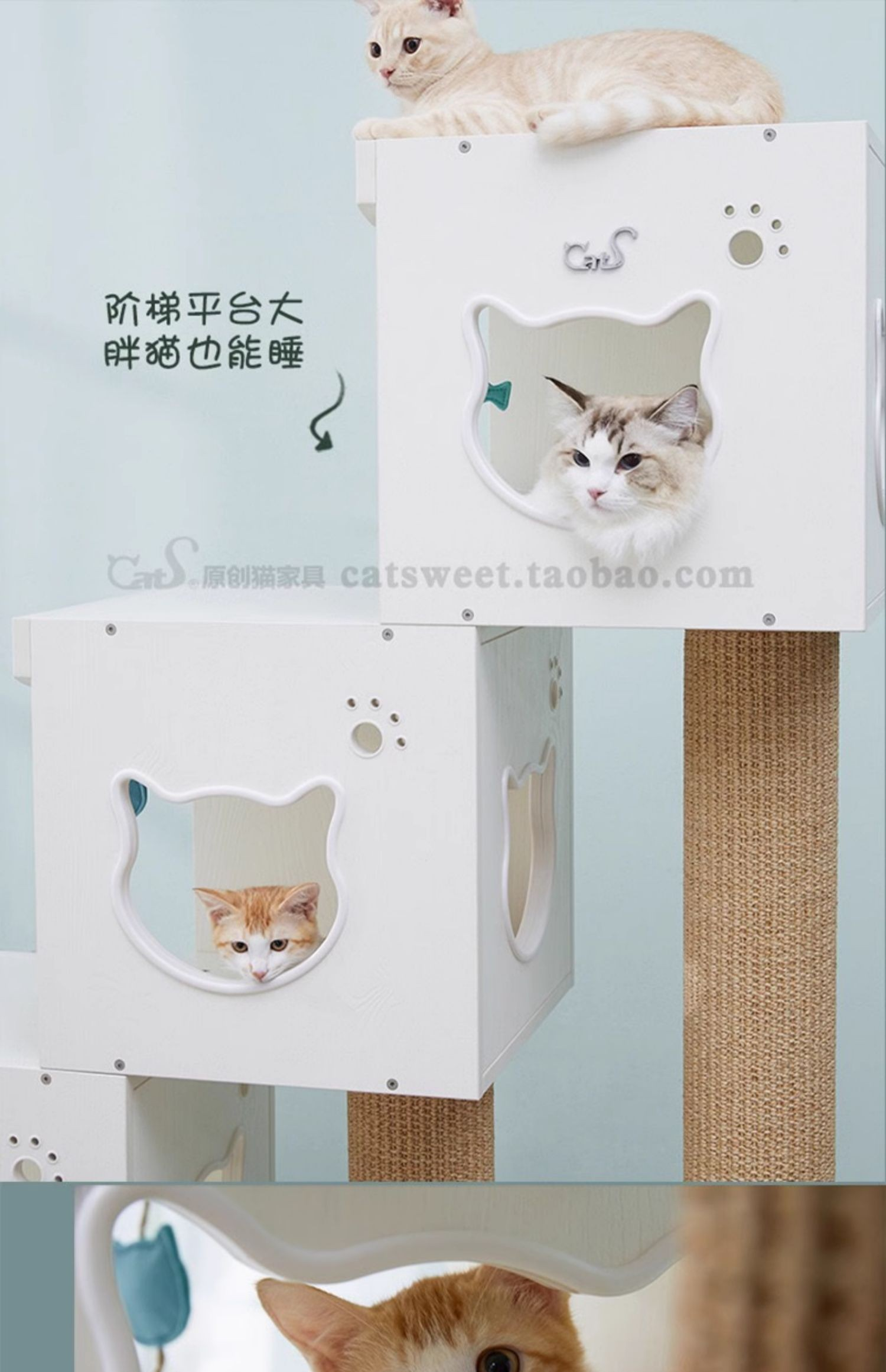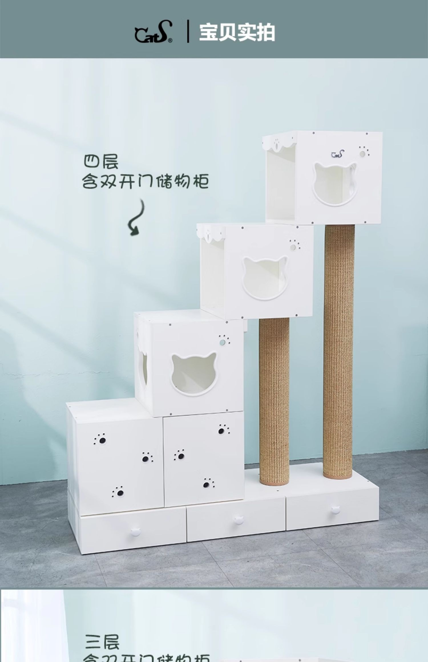 CatS猫家具步步高带抽屉 木制猫窝猫爬架猫树猫抓柱猫玩具 送垫