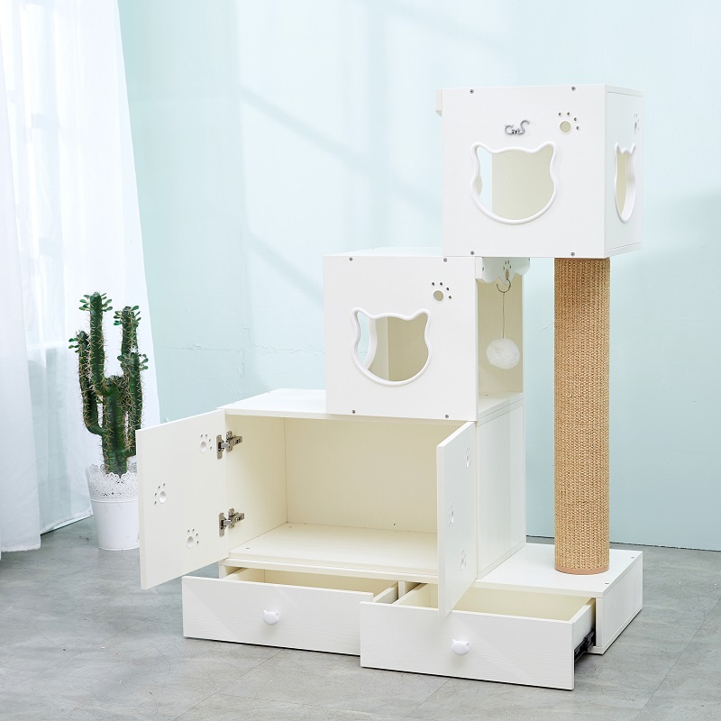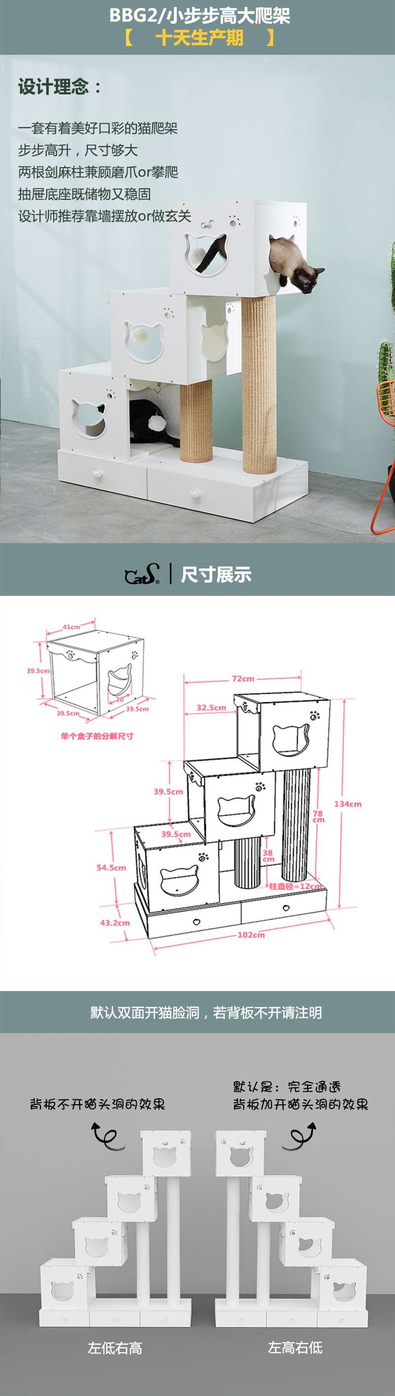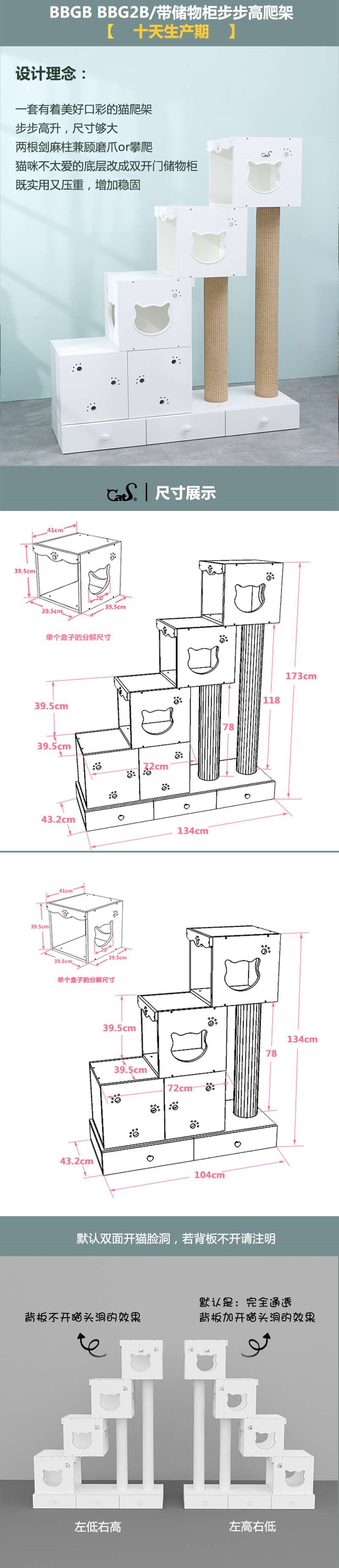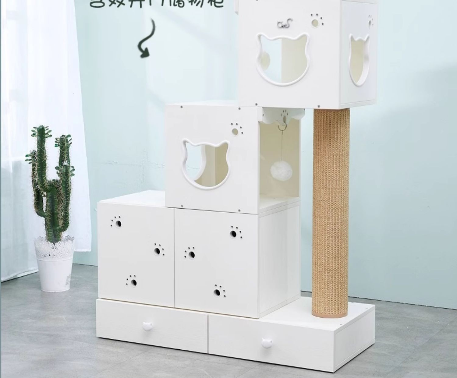 CatS猫家具步步高带抽屉 木制猫窝猫爬架猫树猫抓柱猫玩具 送垫