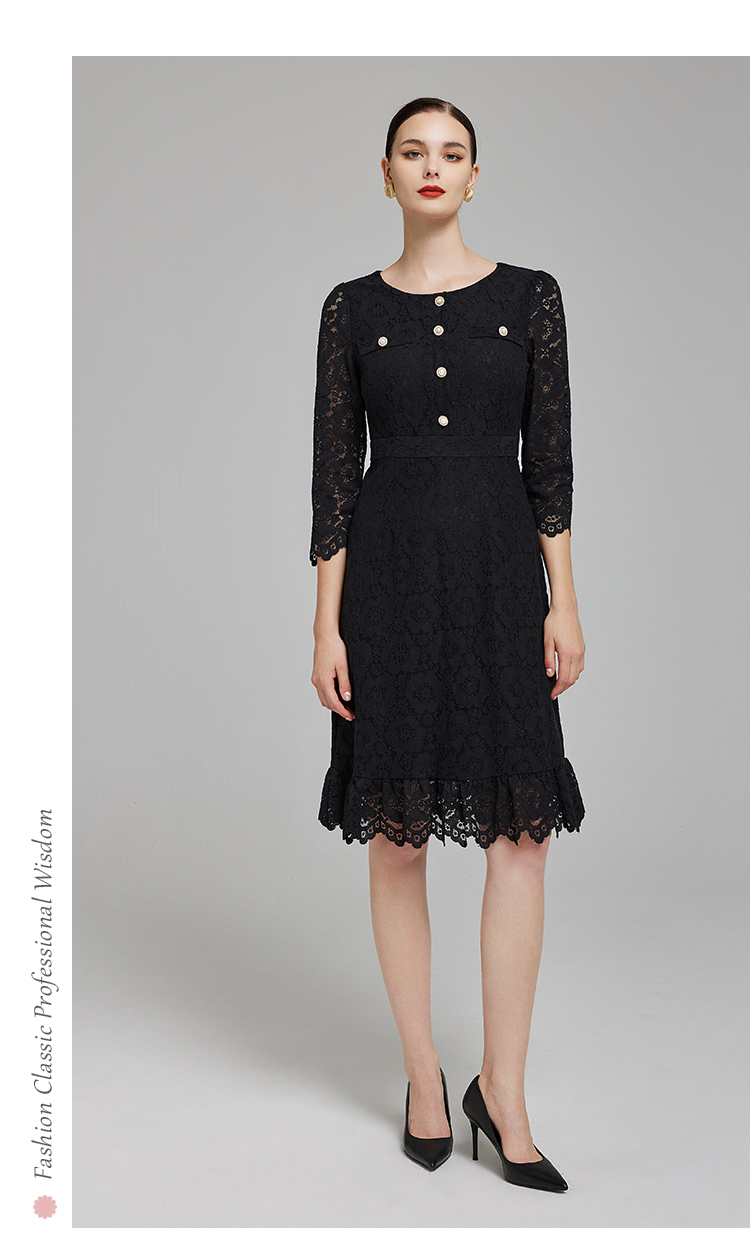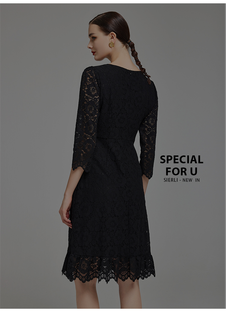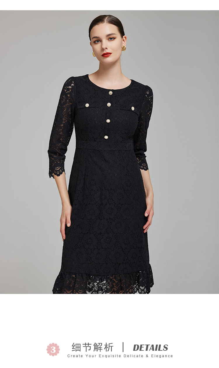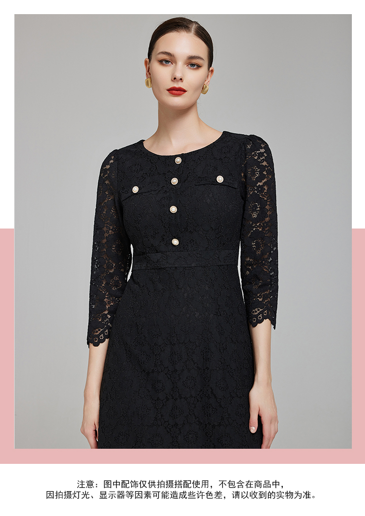 NG832斯尔丽2023秋季新款蕾丝减龄修身显瘦圆领连衣裙