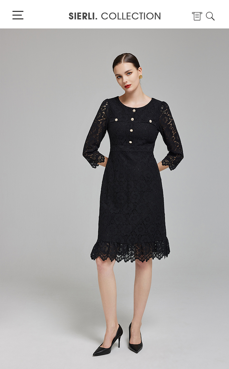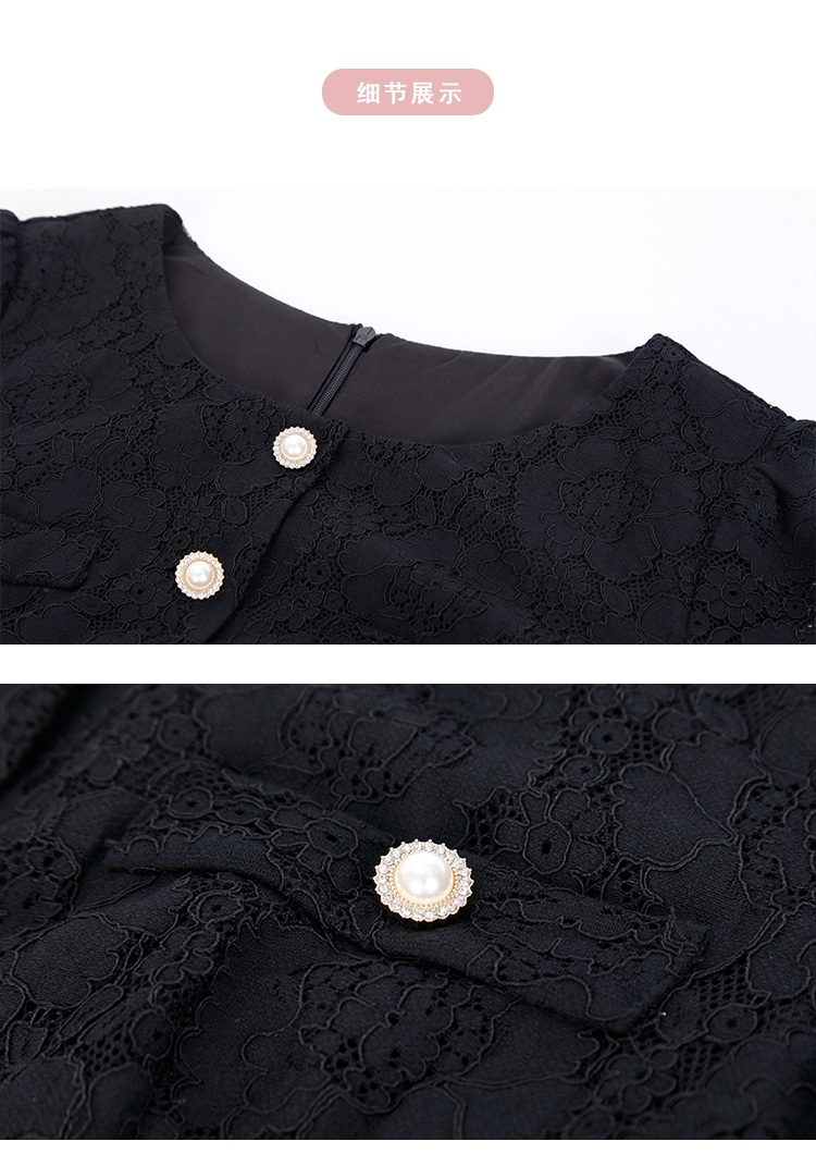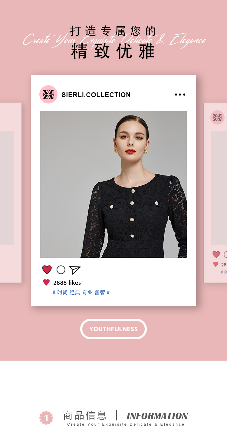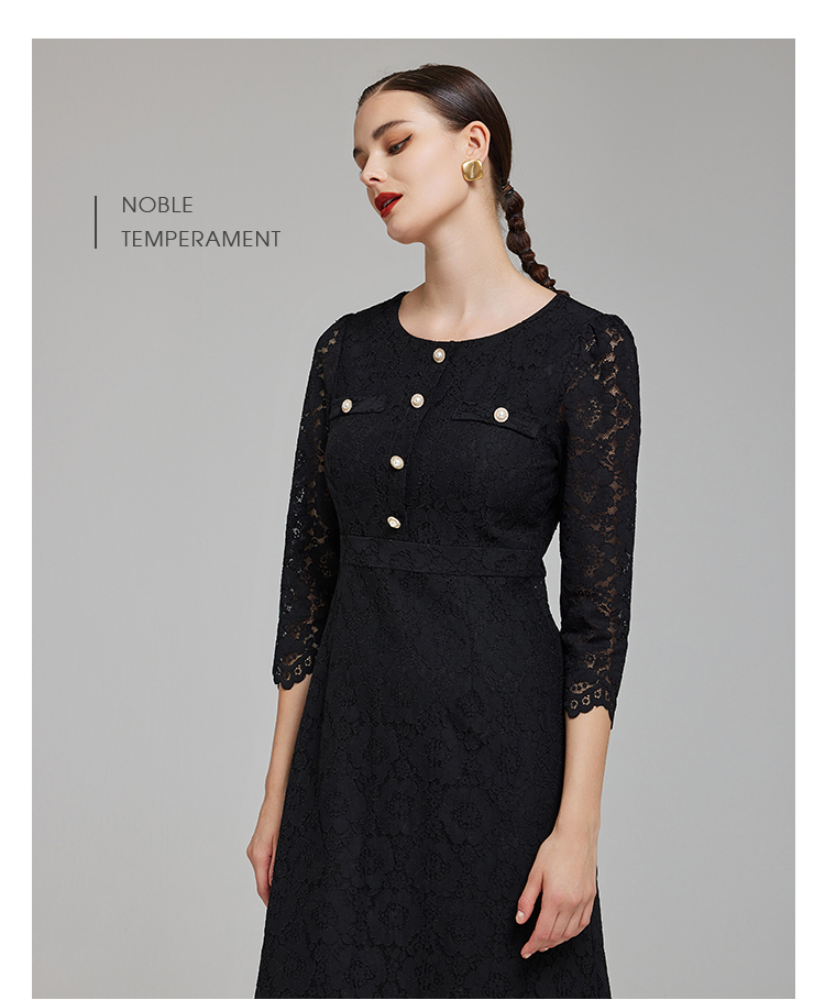 NG832斯尔丽2023秋季新款蕾丝减龄修身显瘦圆领连衣裙