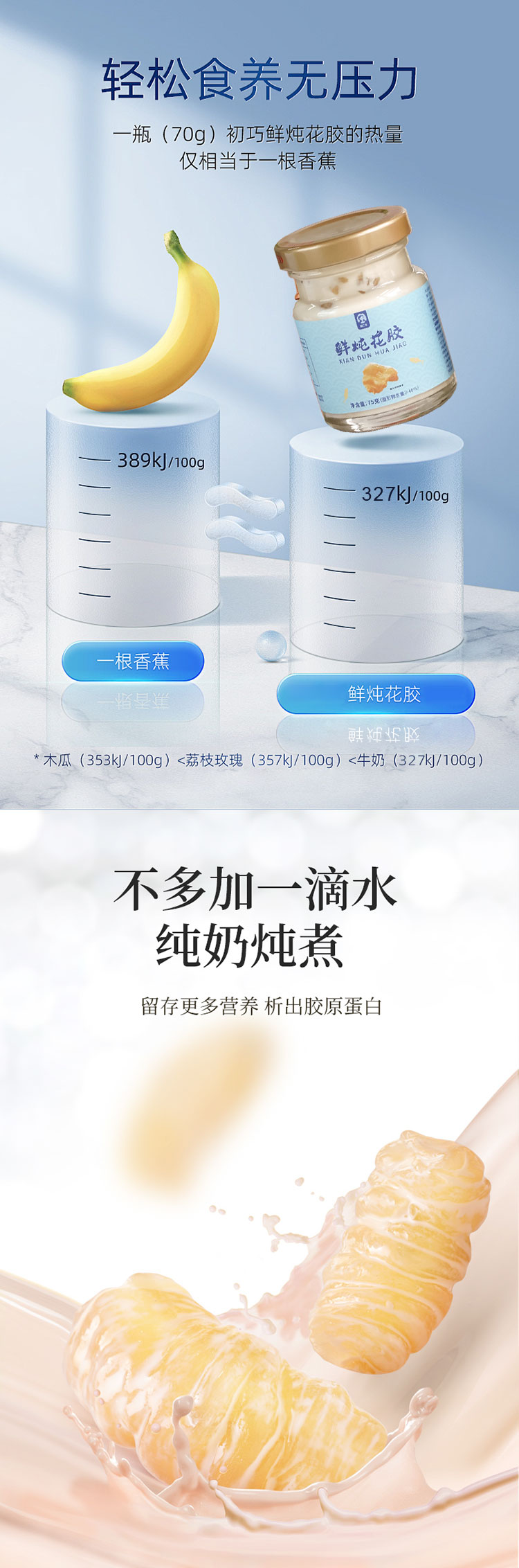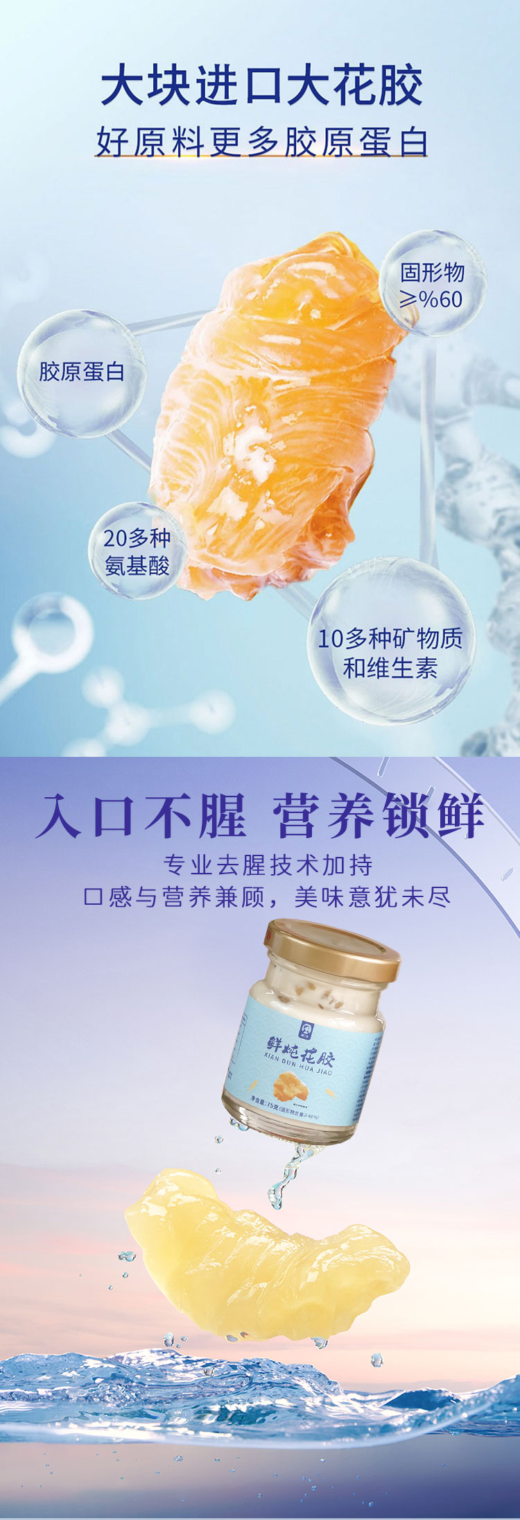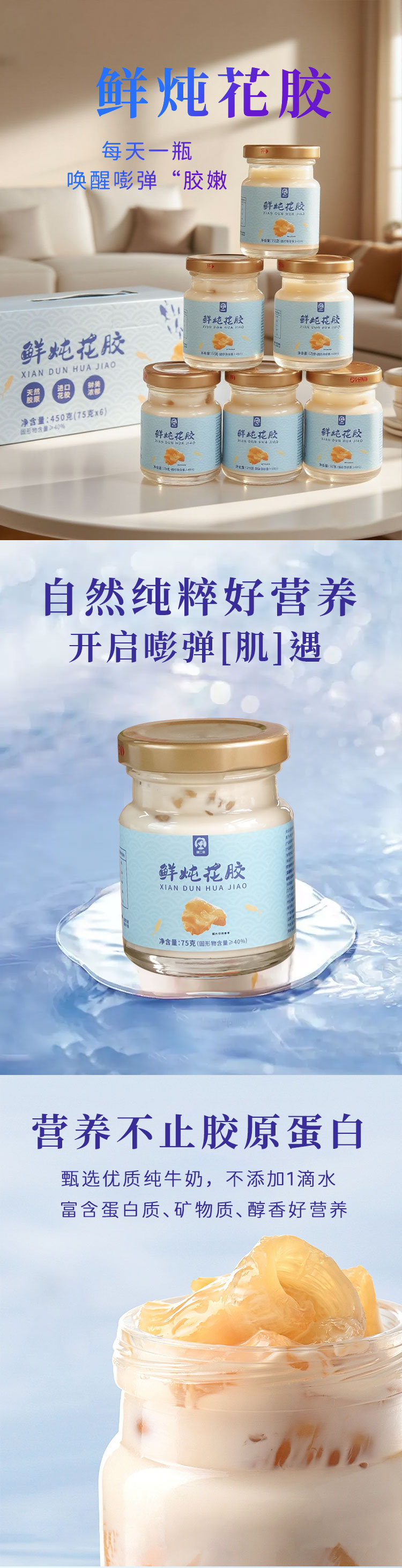 【鲜炖花胶】优选深海白鱼胶 4克/瓶添加量 去腥工艺 牛奶炖煮 0防腐 0添加 孕妇月子滋补 日常补充胶原蛋白 75g*6罐/箱