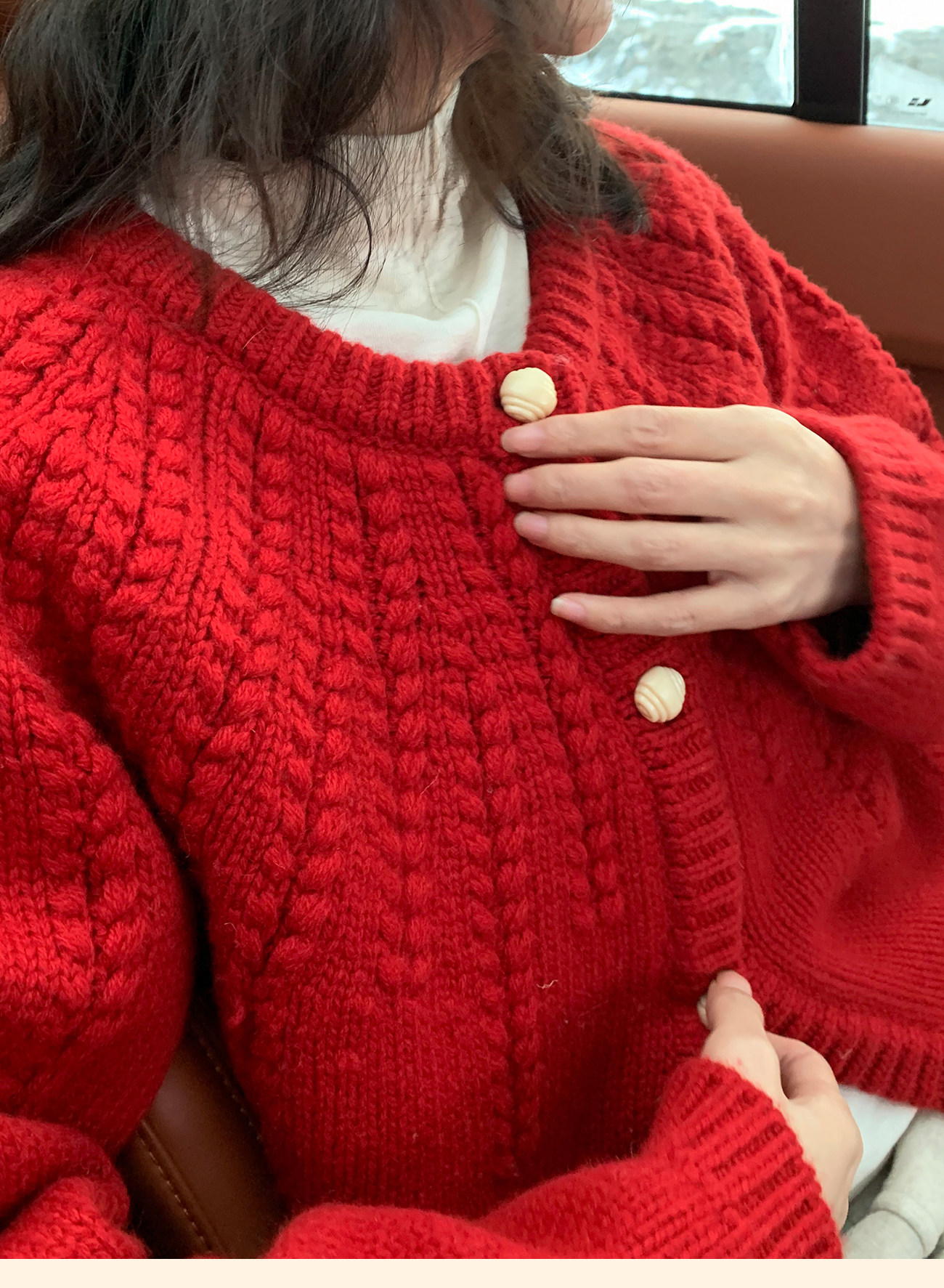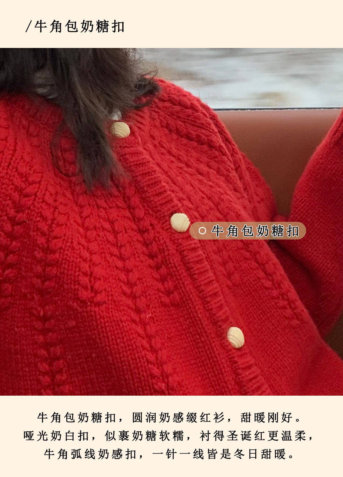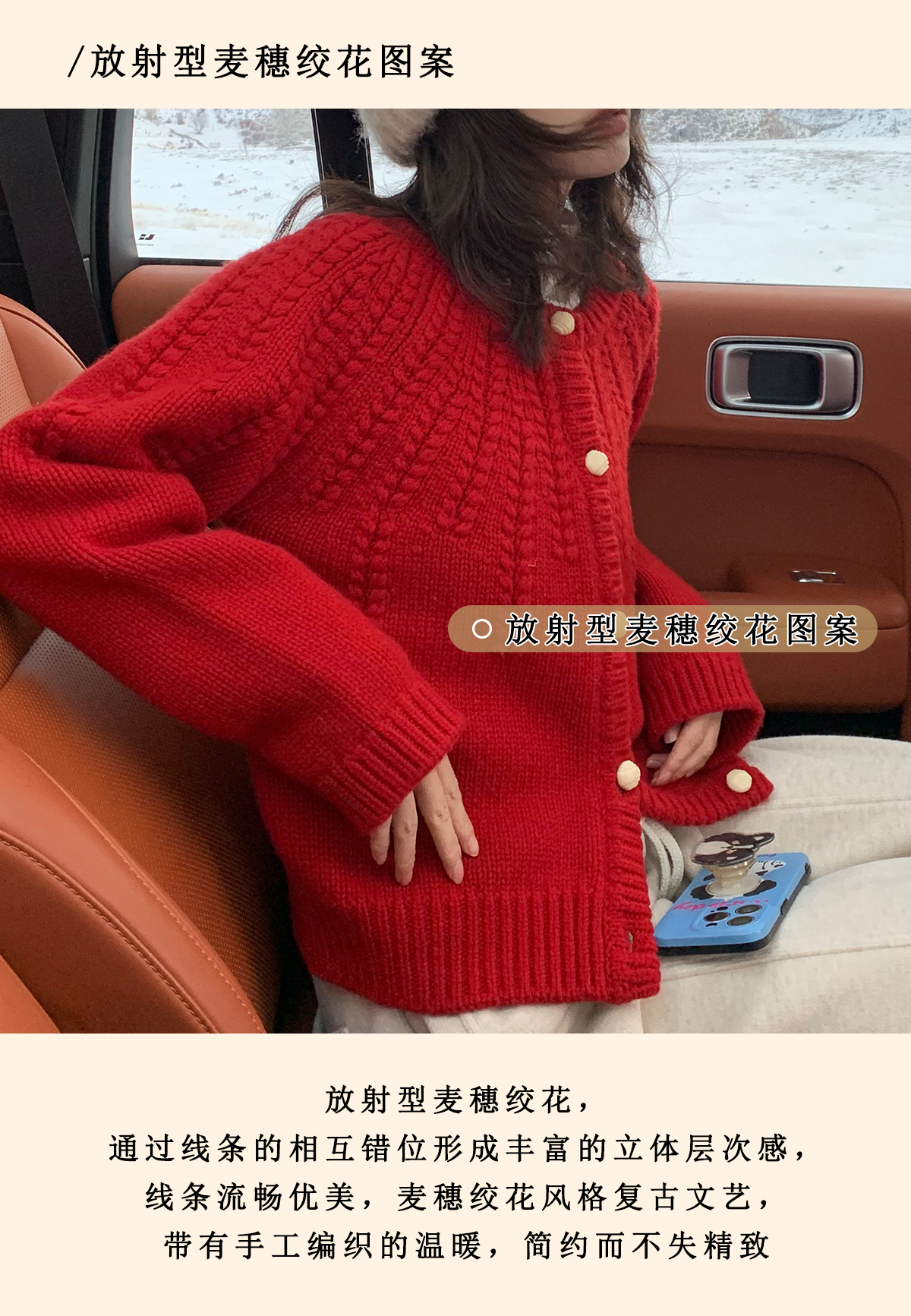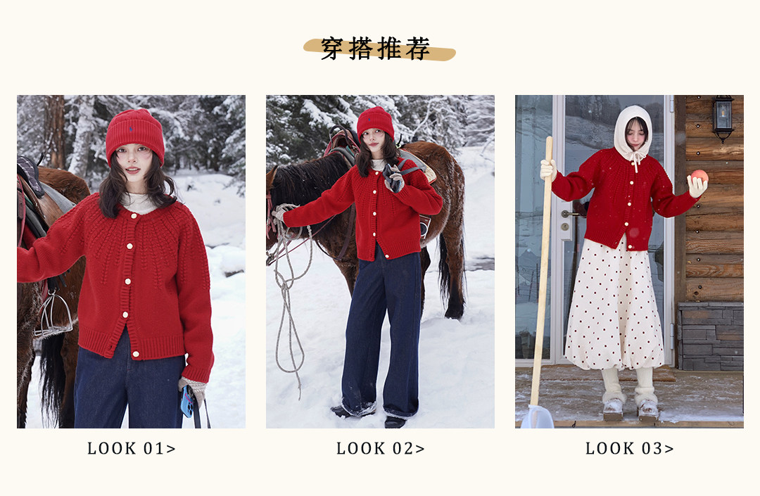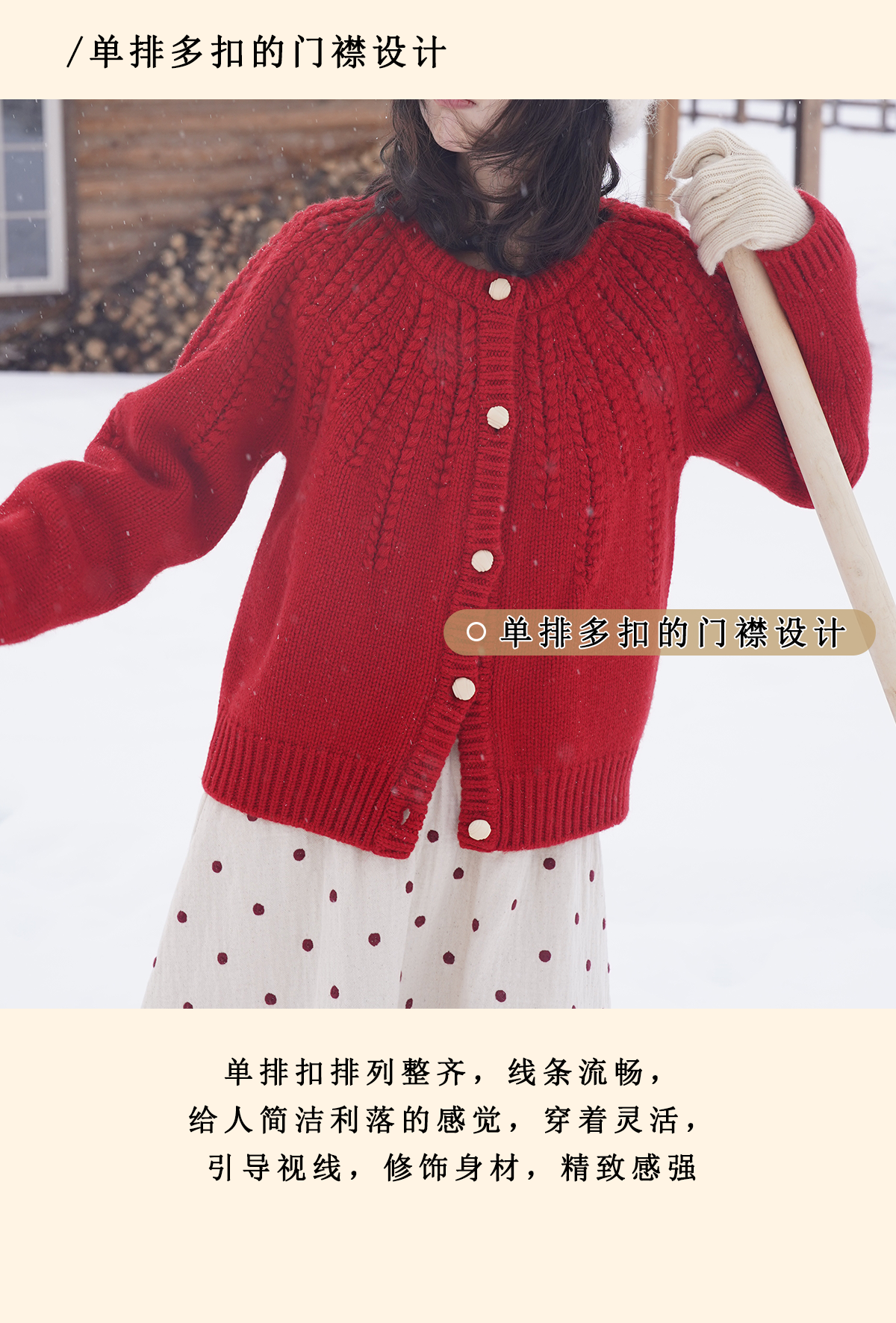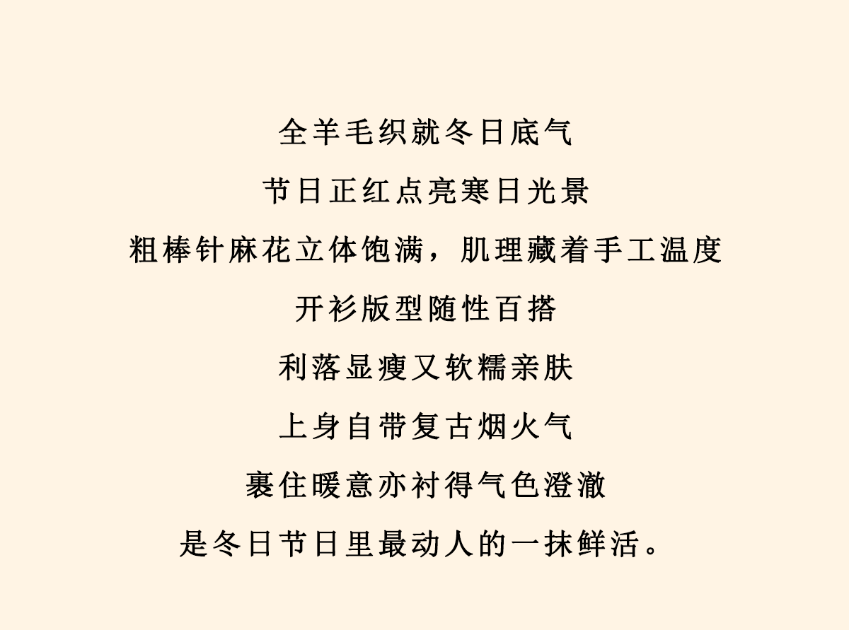 浮生八记/25C198/“棒针节日红”正红色粗棒针麻花毛衣开衫