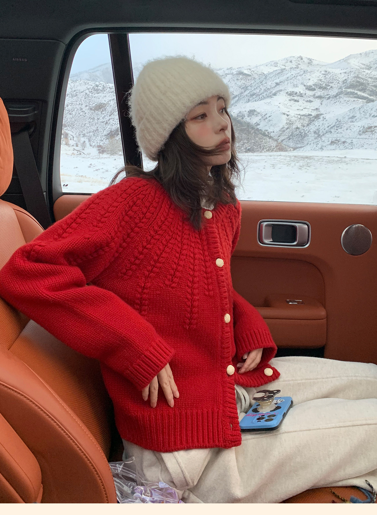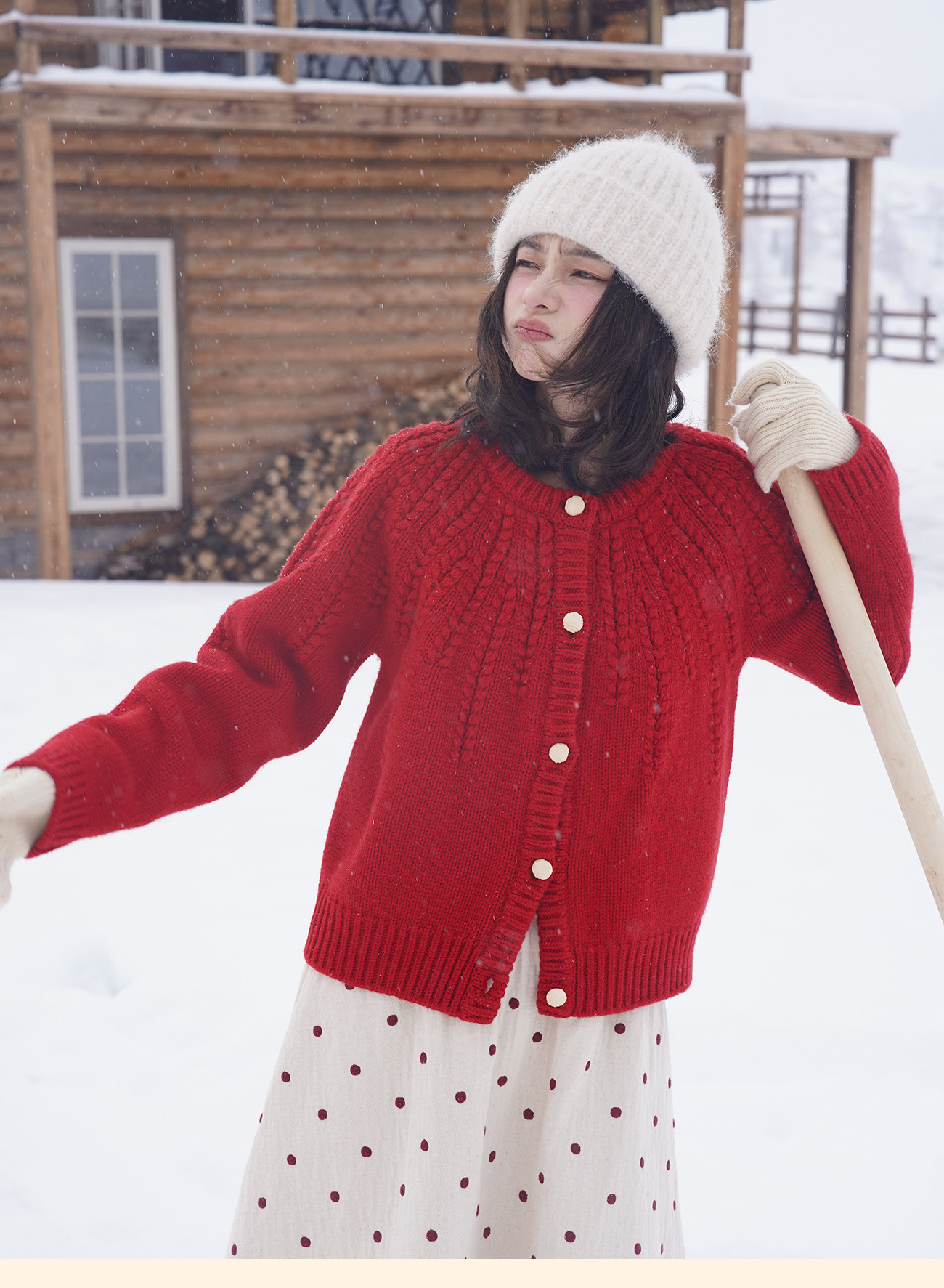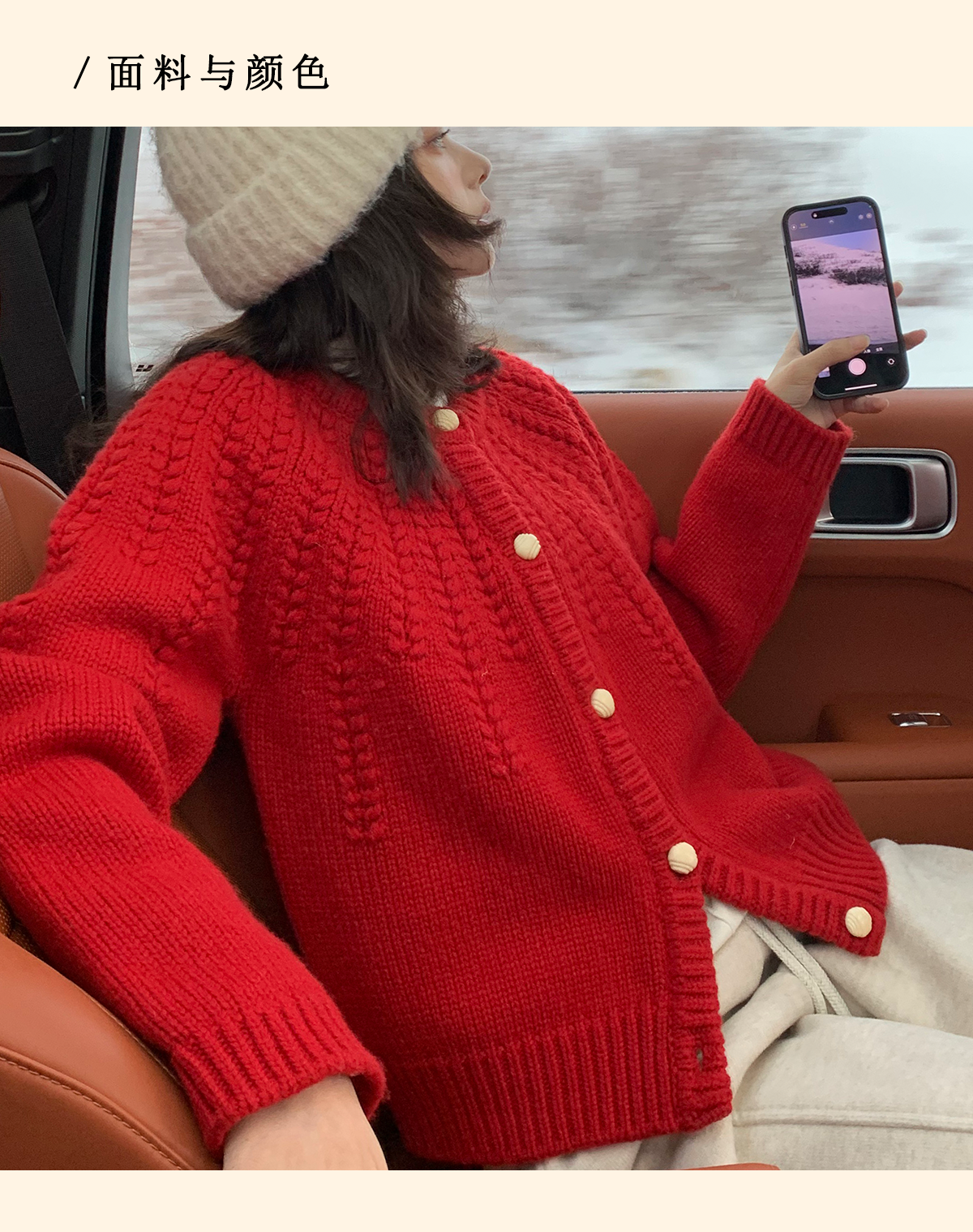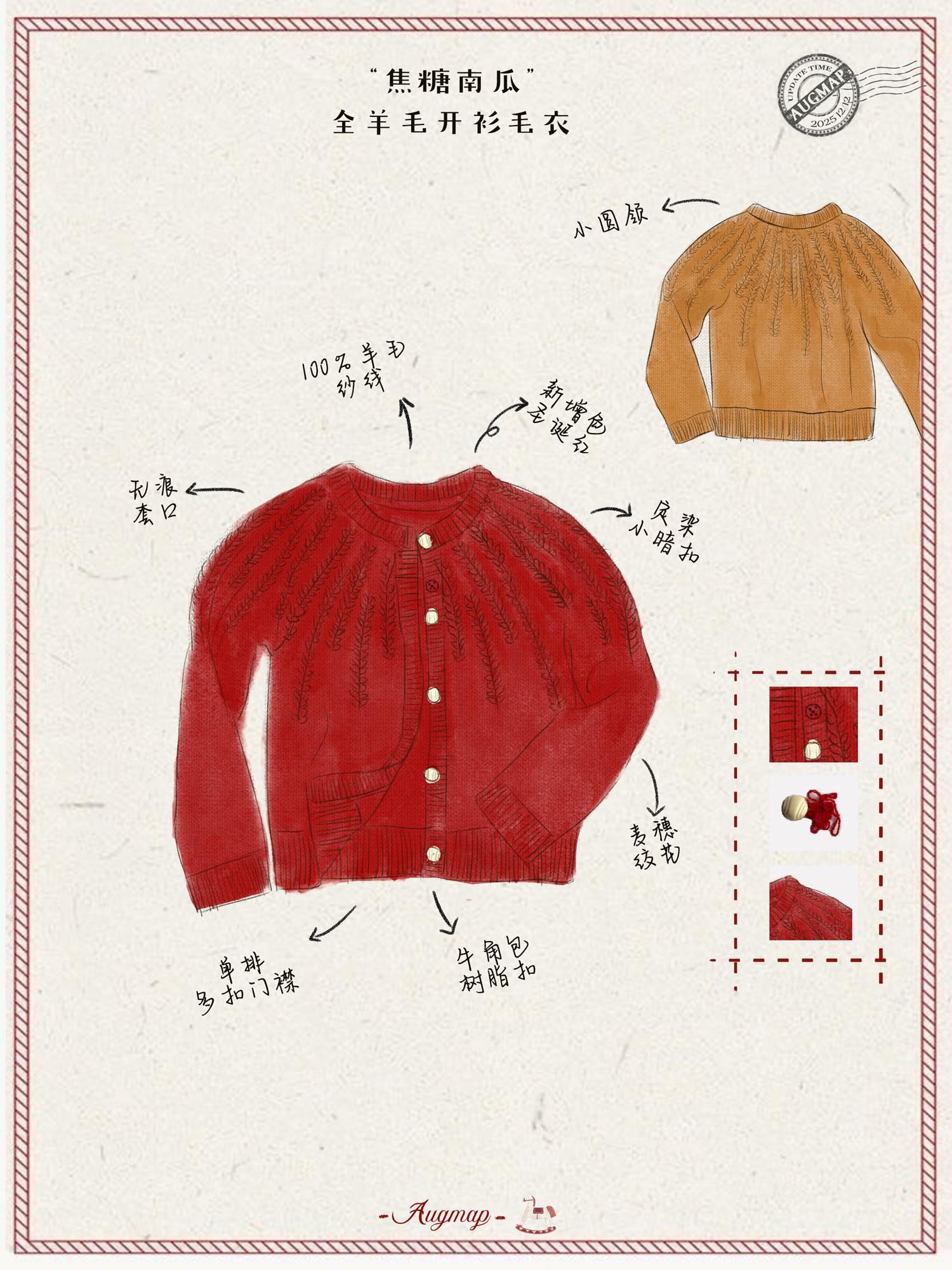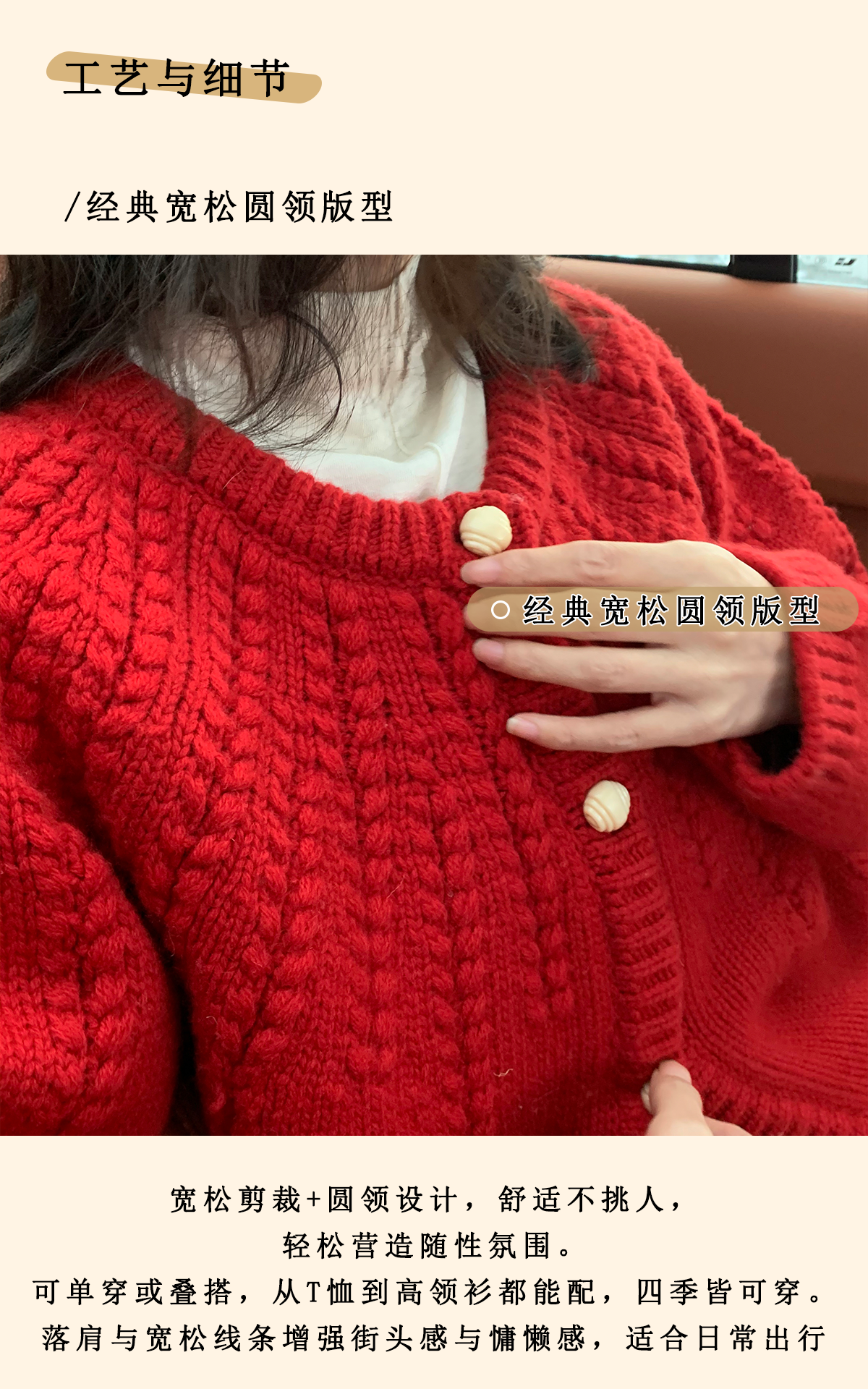 浮生八记/25C198/“棒针节日红”正红色粗棒针麻花毛衣开衫