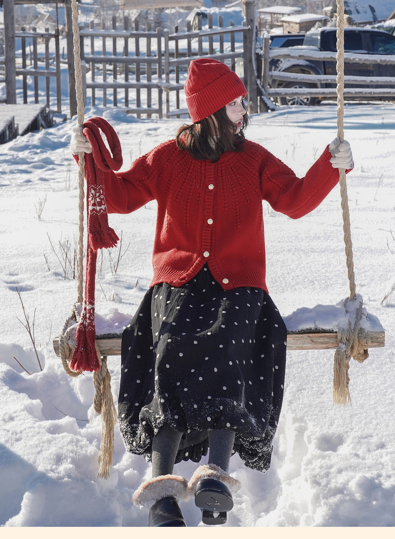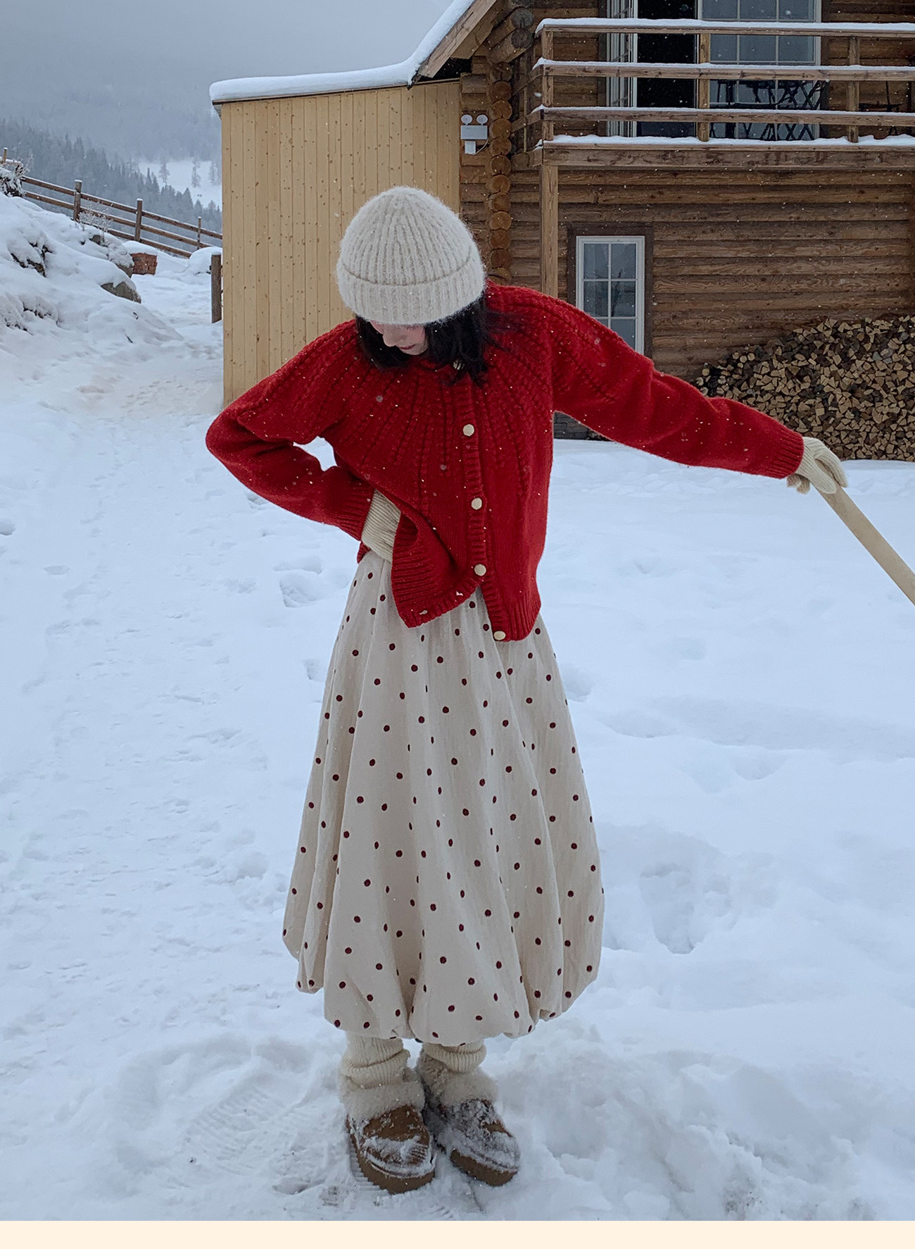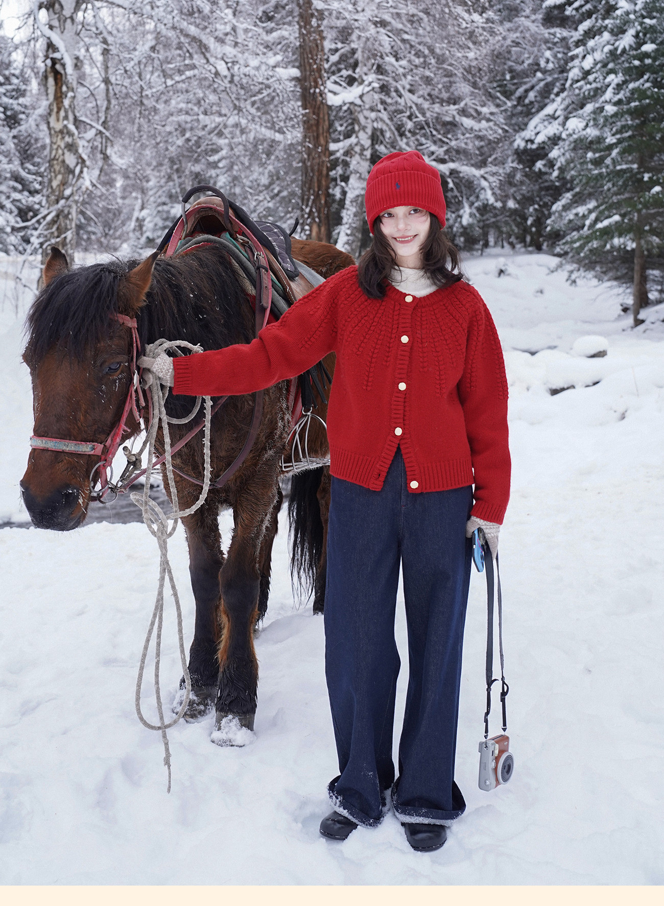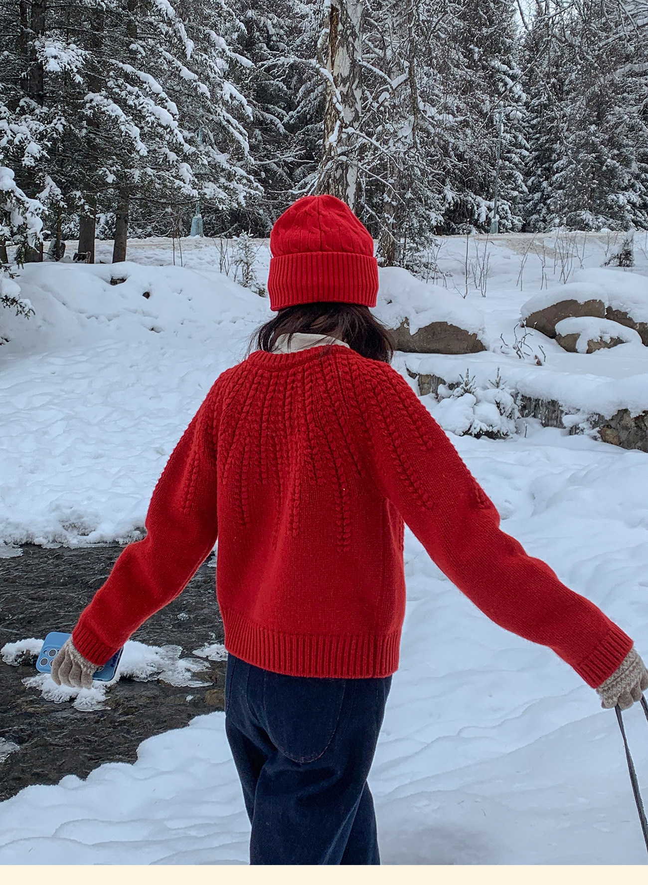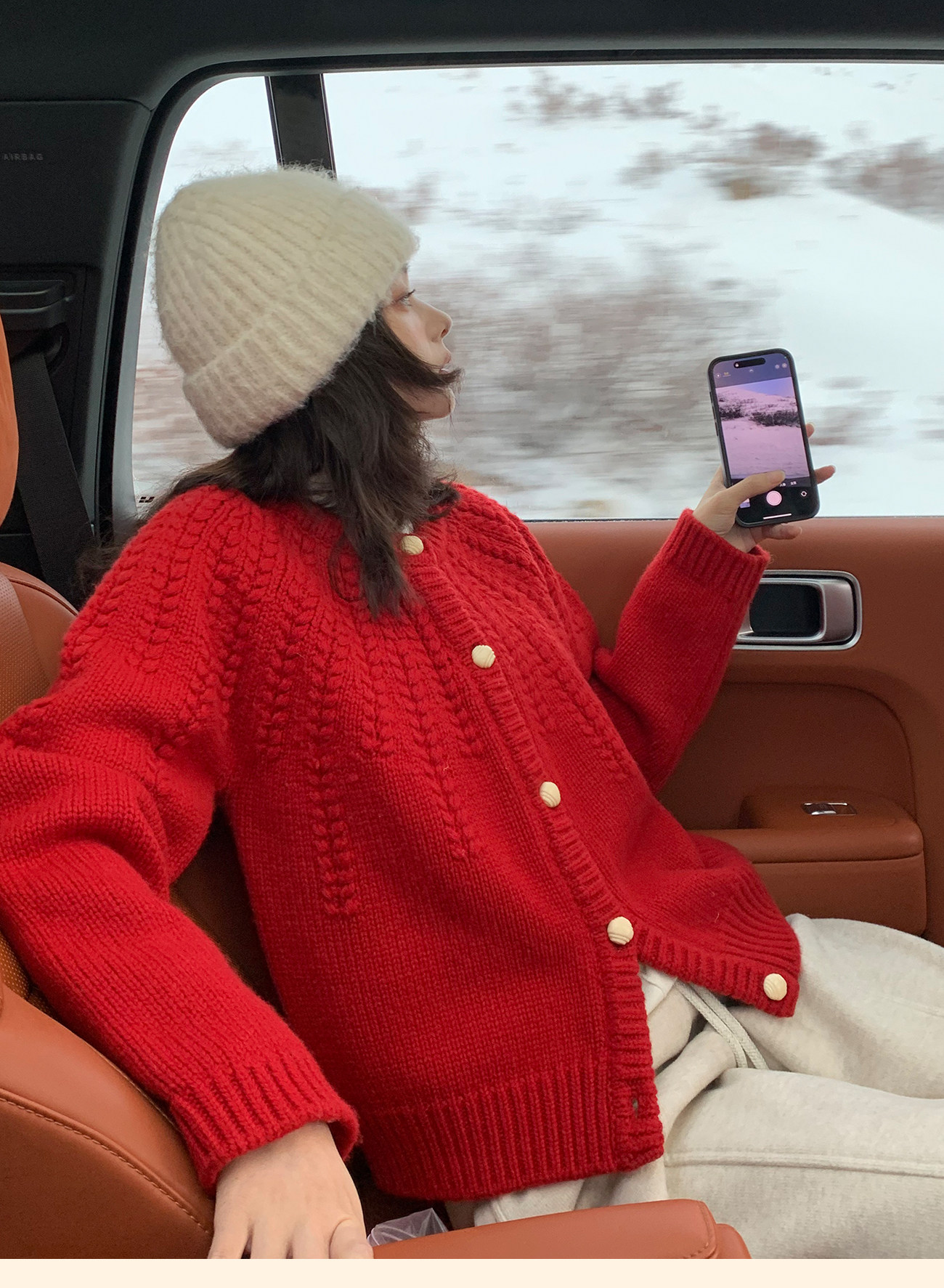 浮生八记/25C198/“棒针节日红”正红色粗棒针麻花毛衣开衫