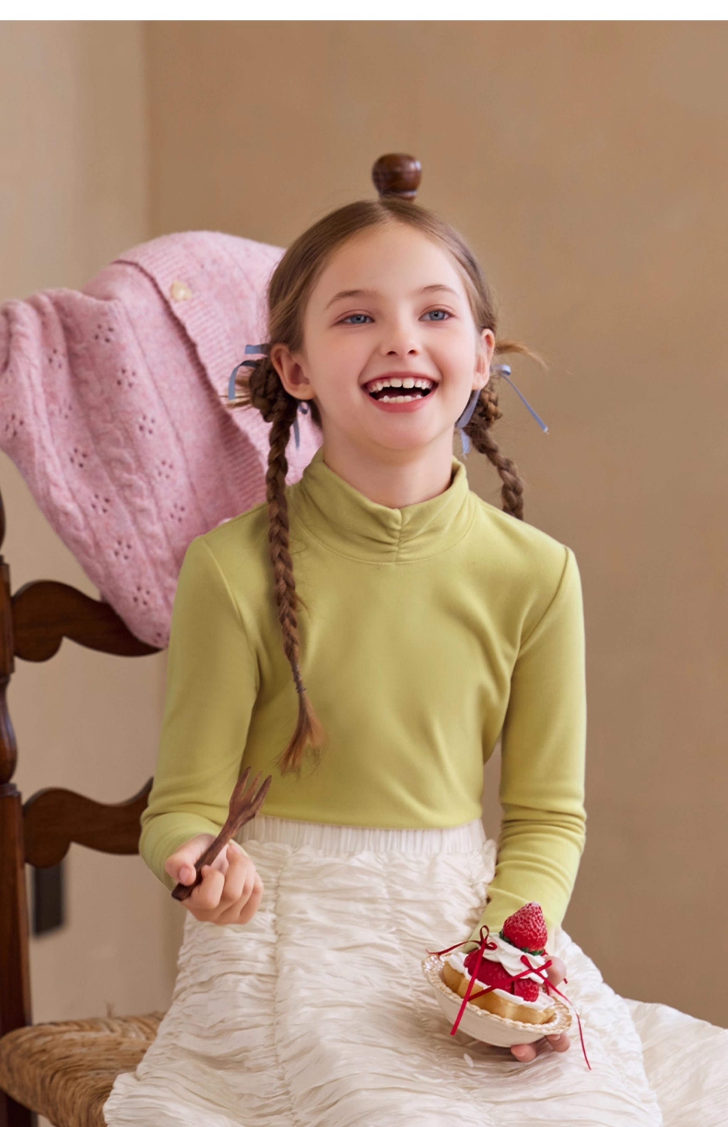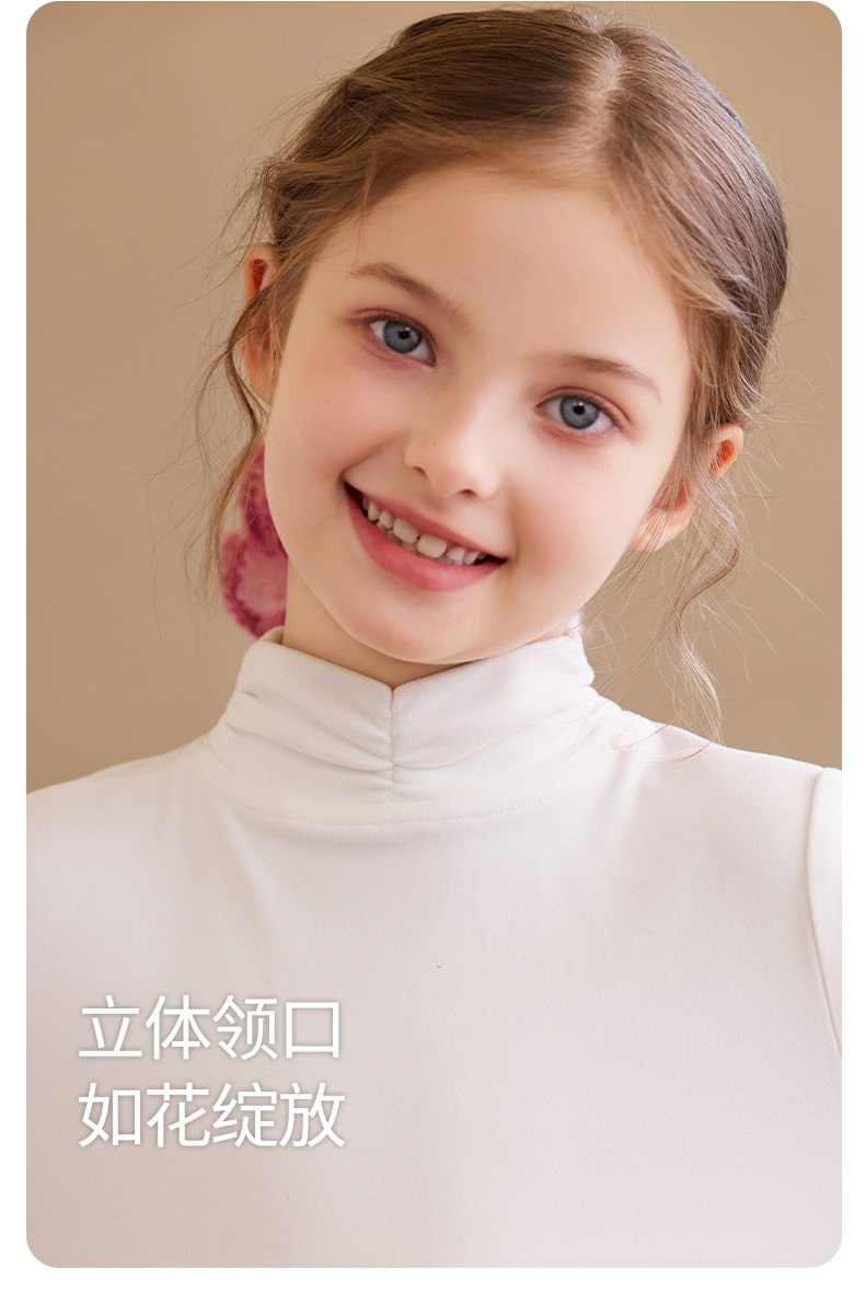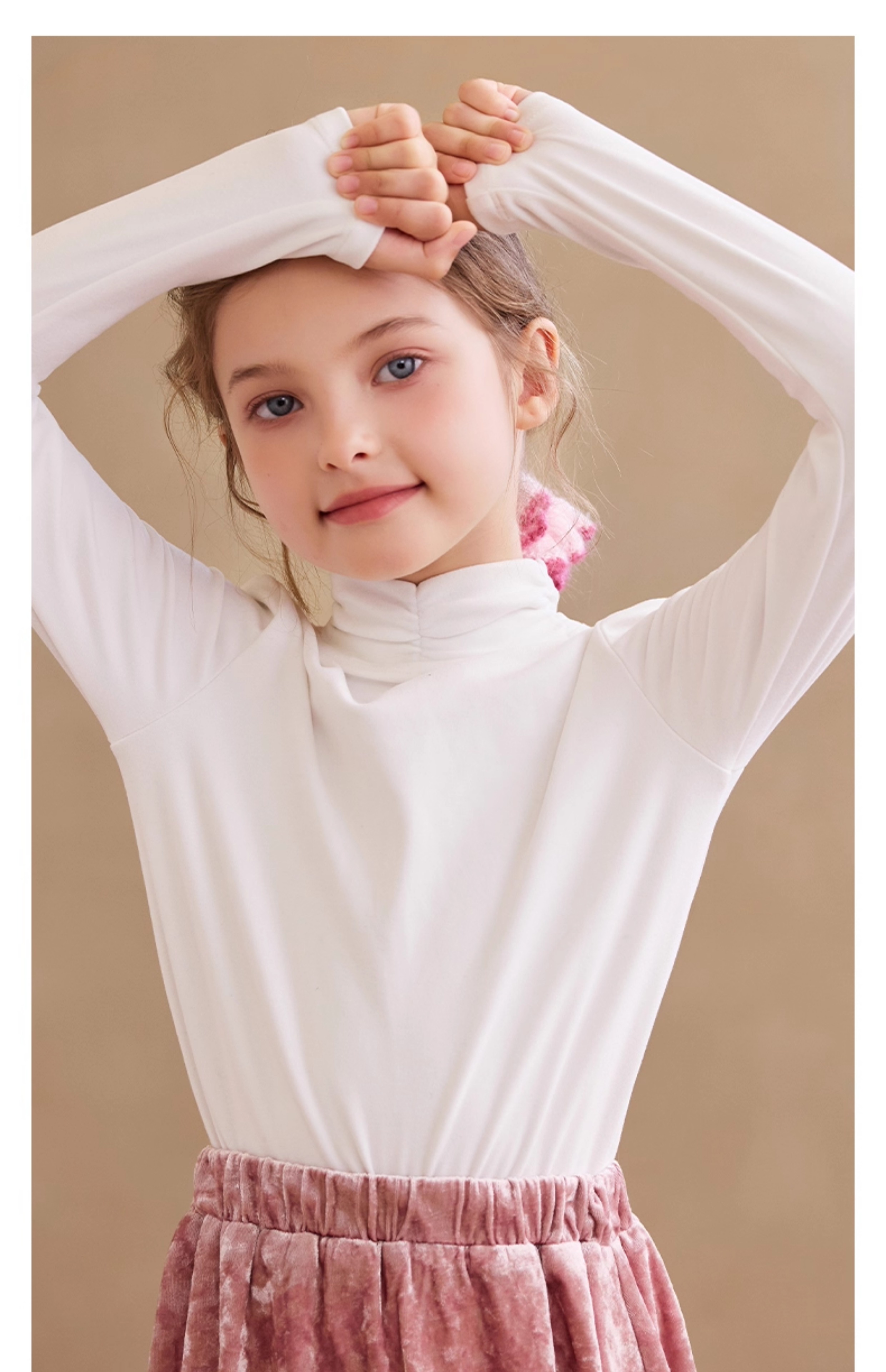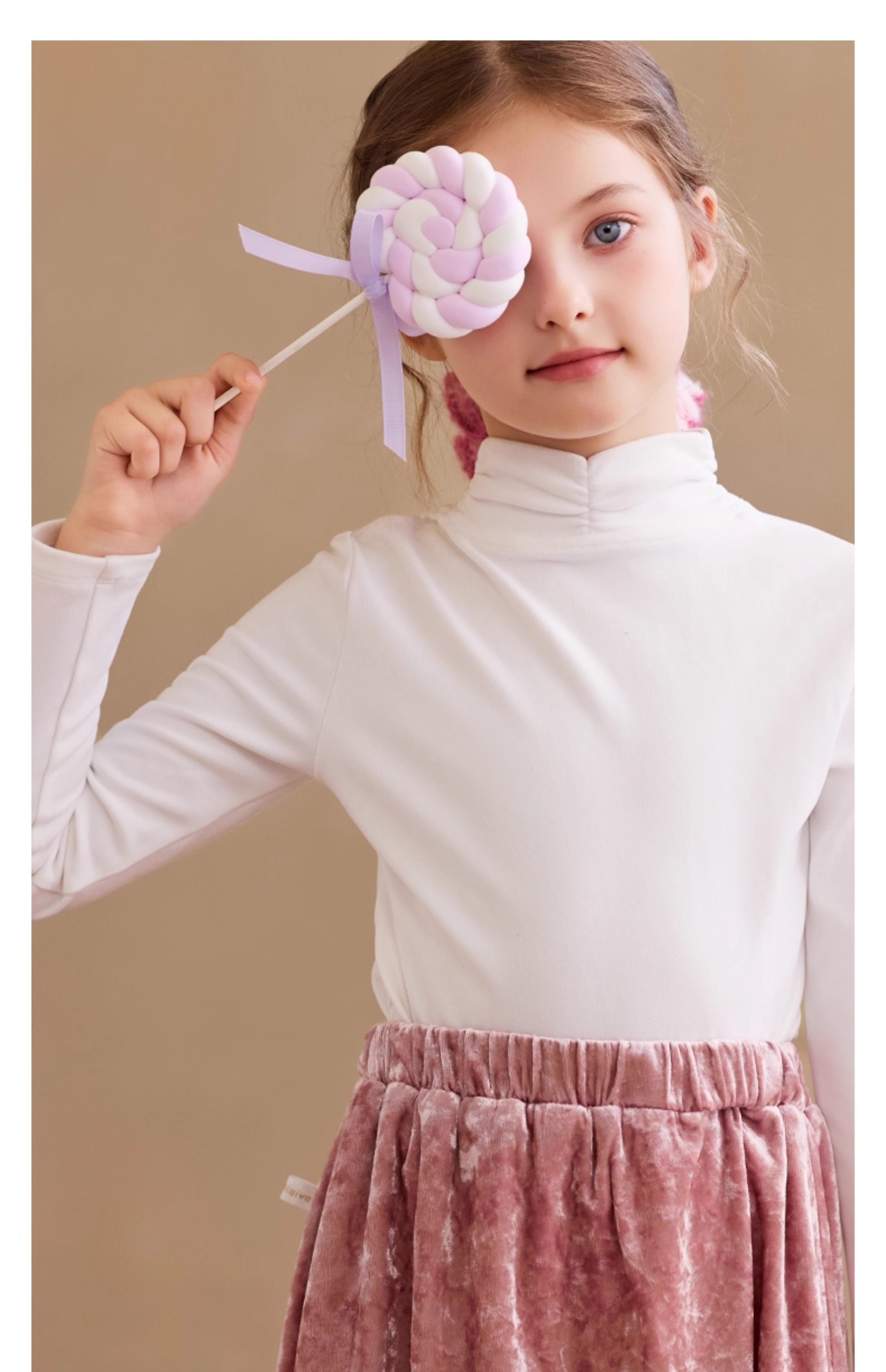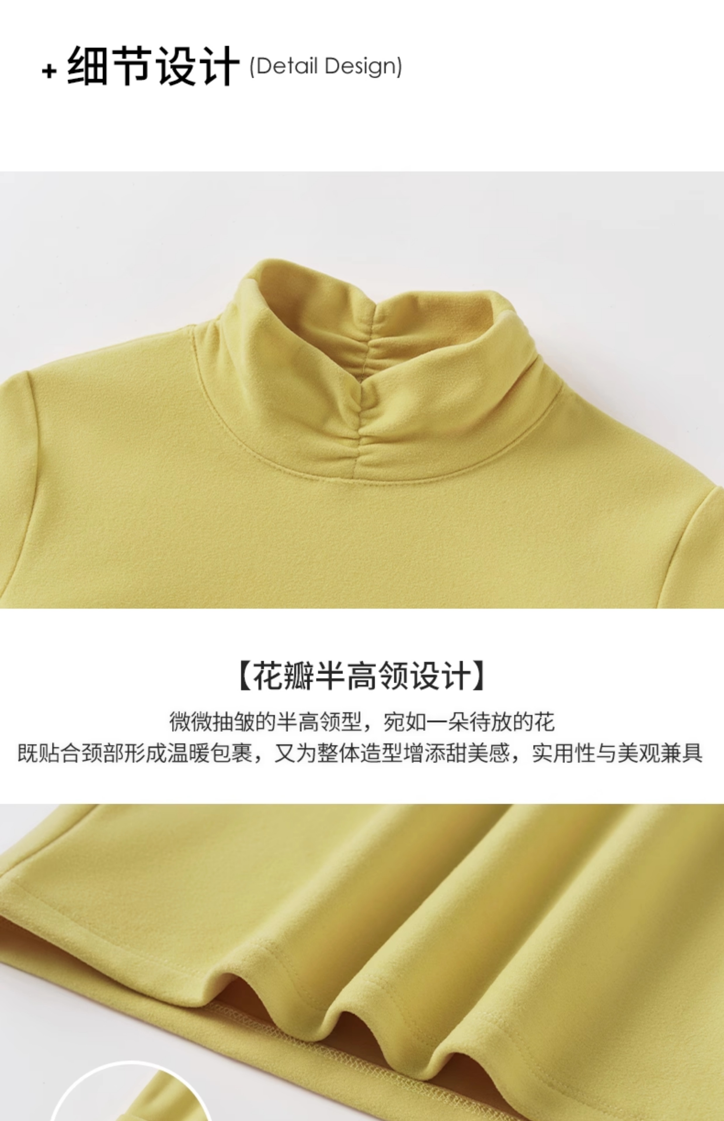 【云优选】Little Naive女童内搭T恤秋季花瓣半高领纯色打底衫儿童甜美上衣