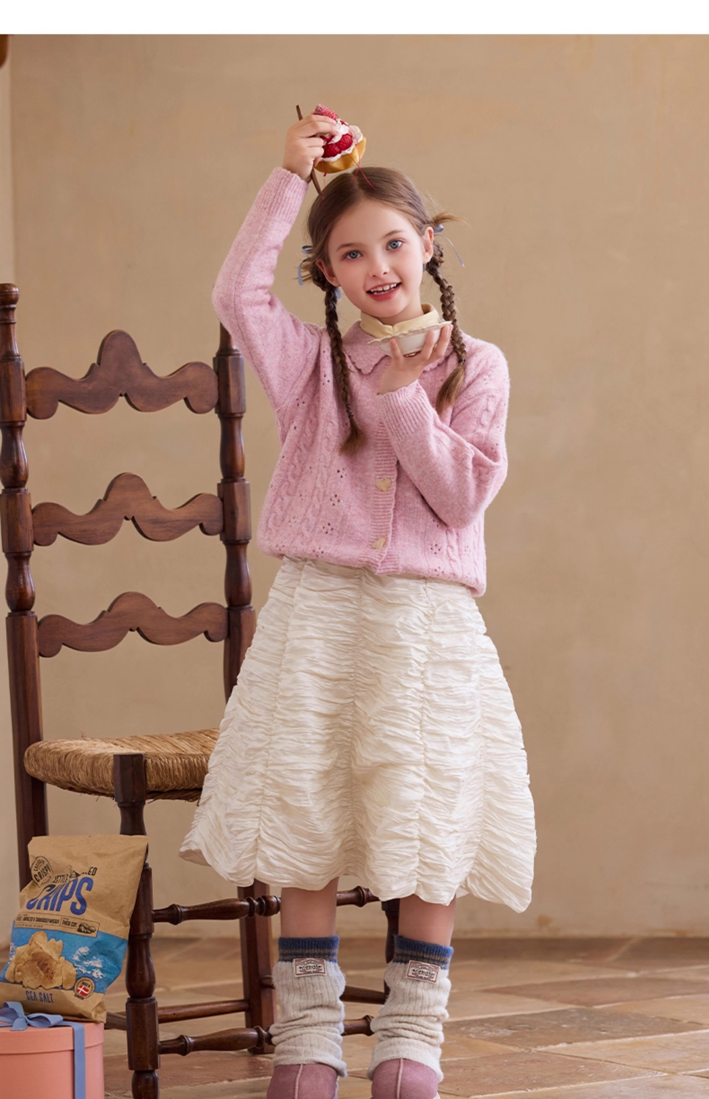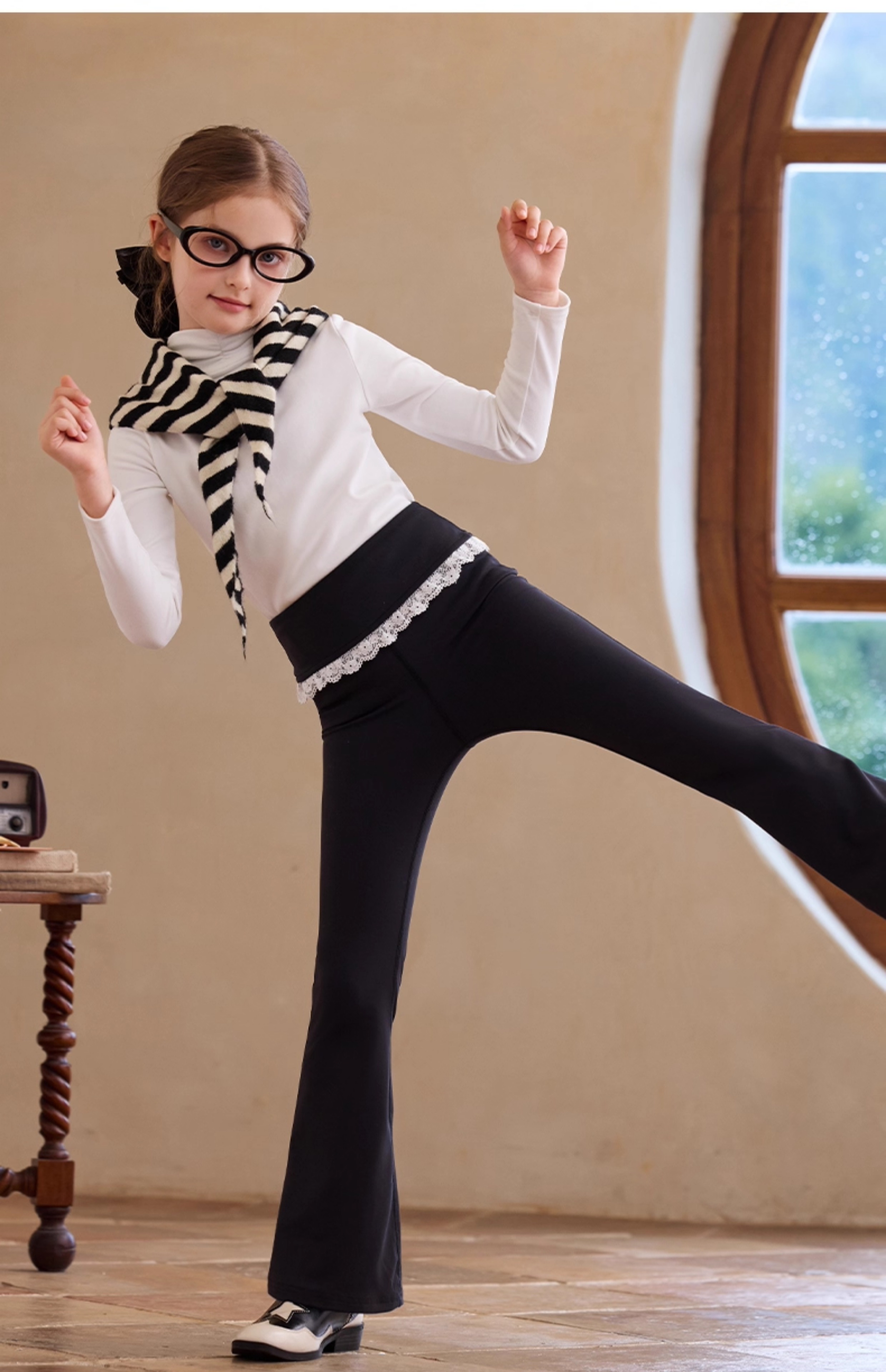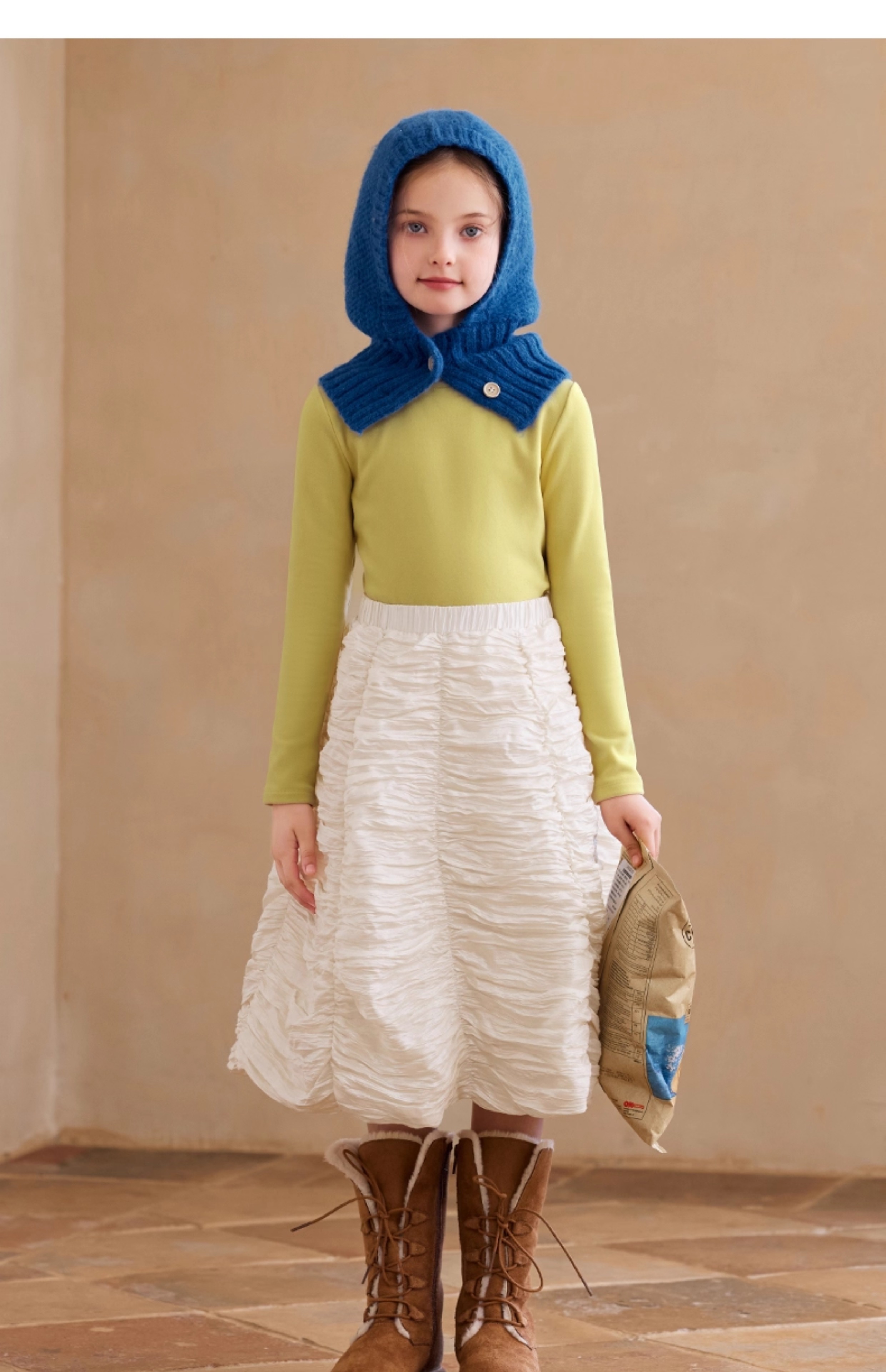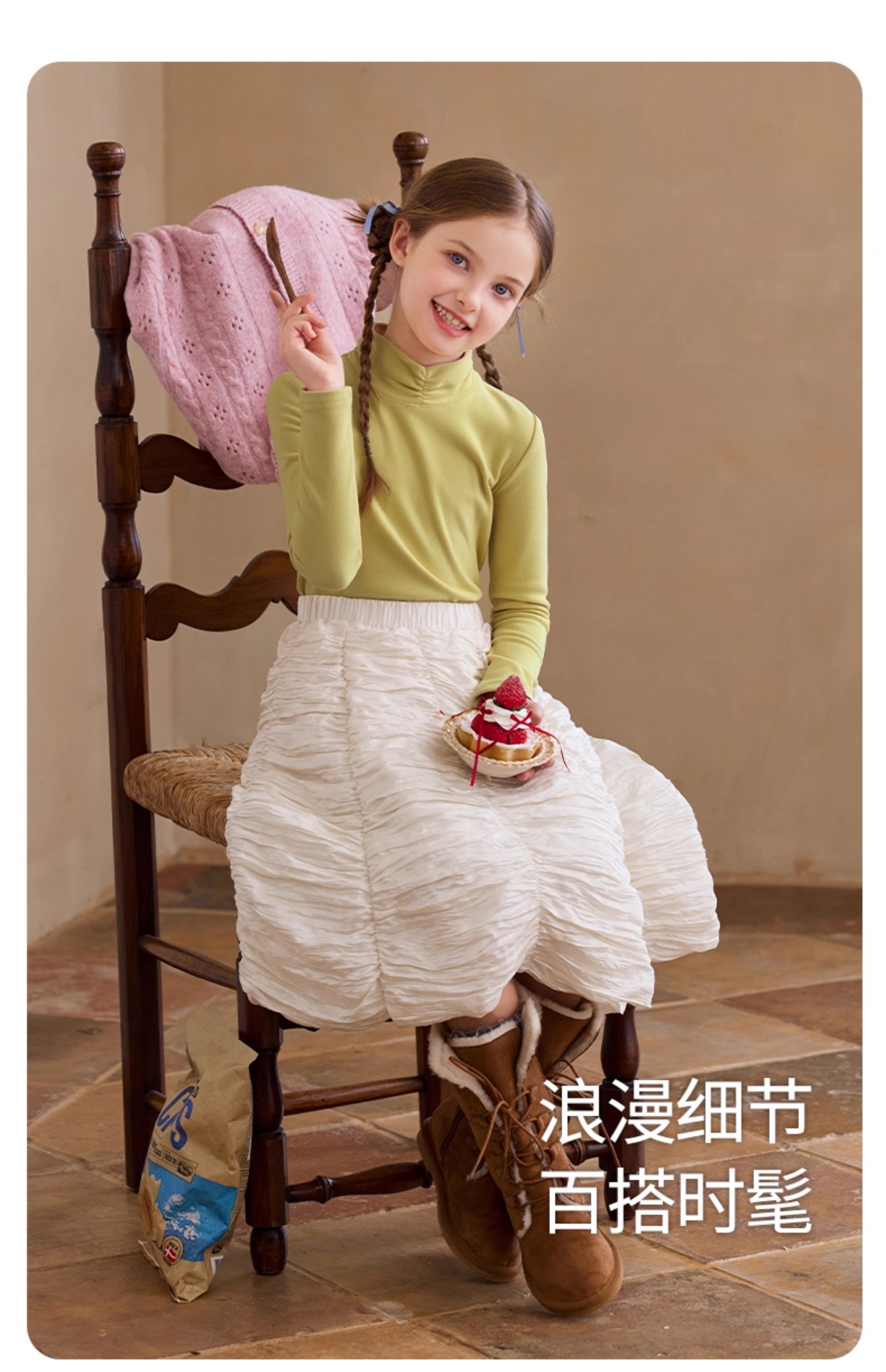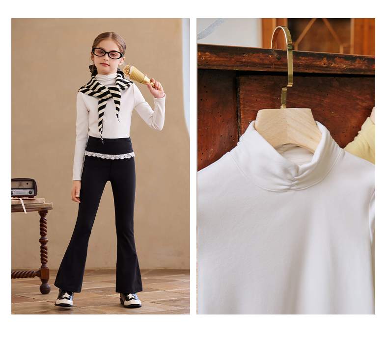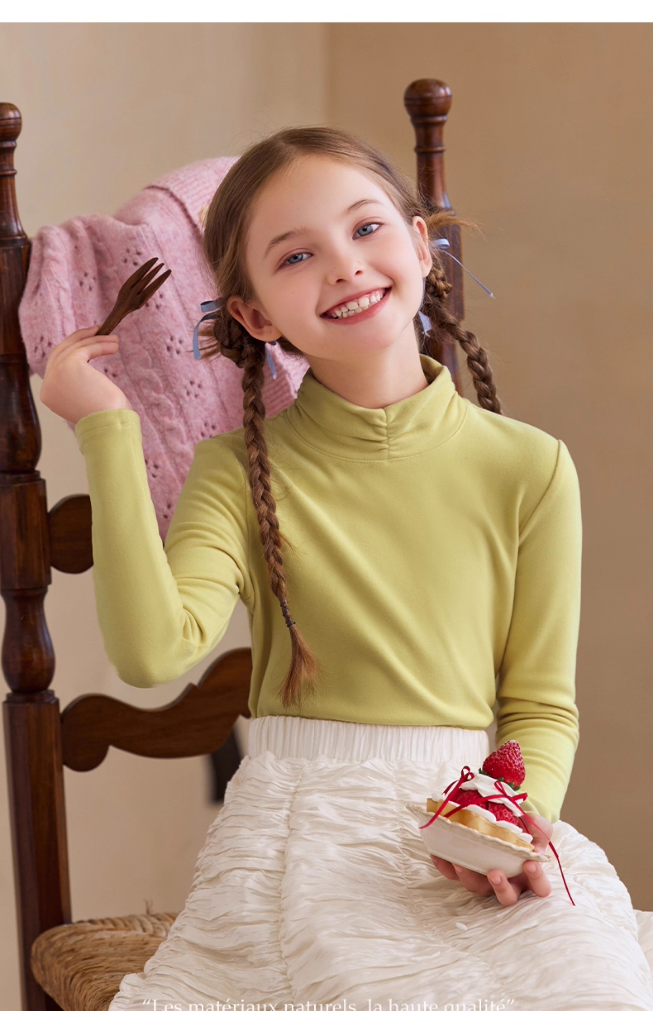 【云优选】Little Naive女童内搭T恤秋季花瓣半高领纯色打底衫儿童甜美上衣