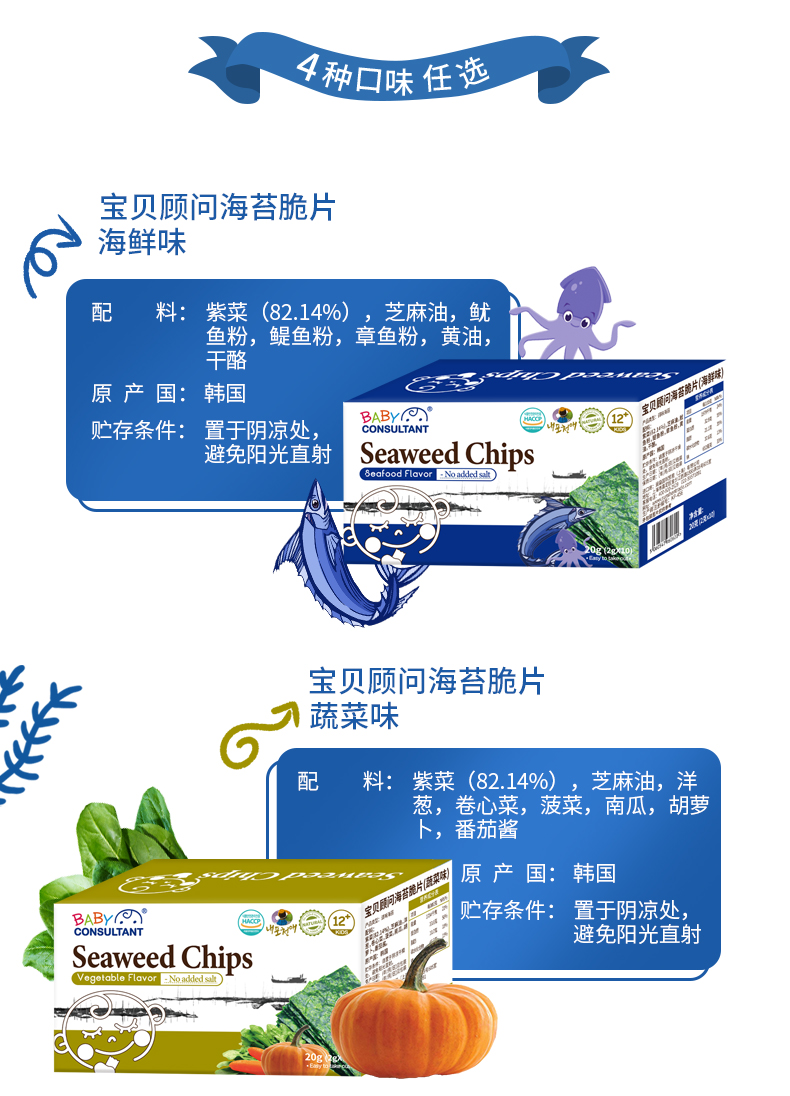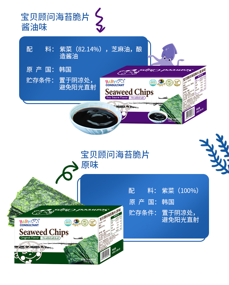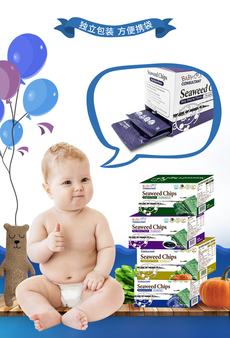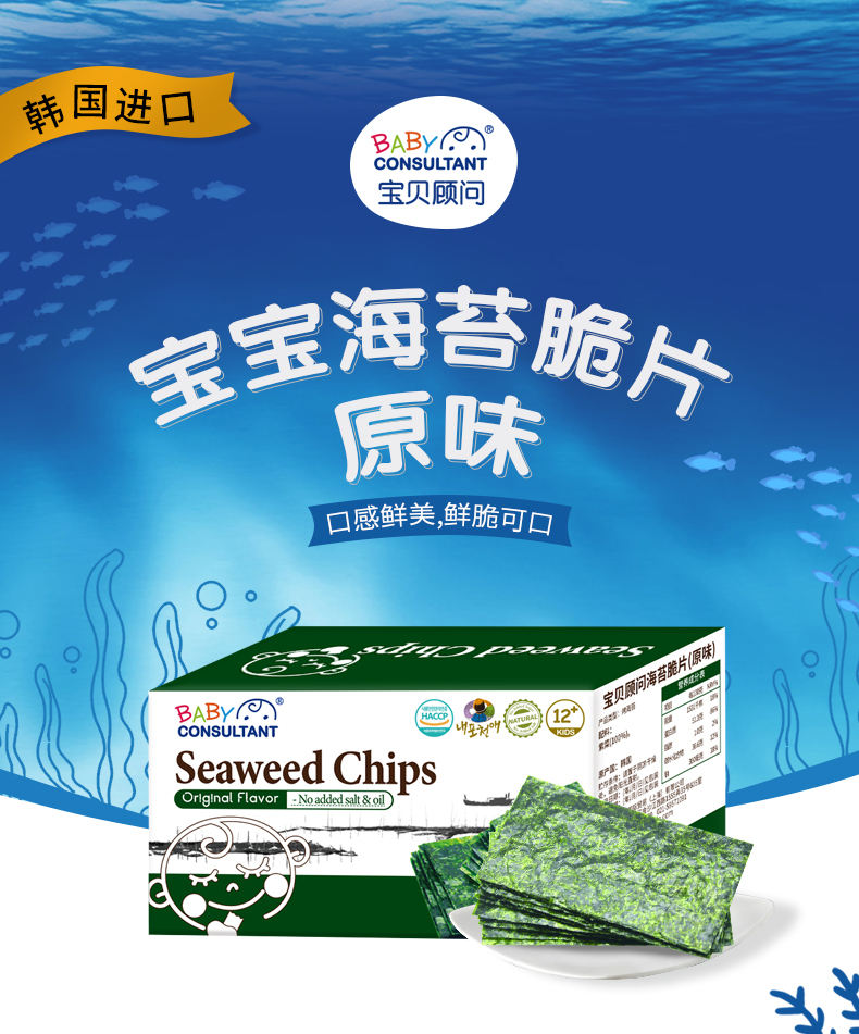 宝贝顾问海苔宝宝儿童婴儿即食海苔零食不添加盐独立小袋盒装便携