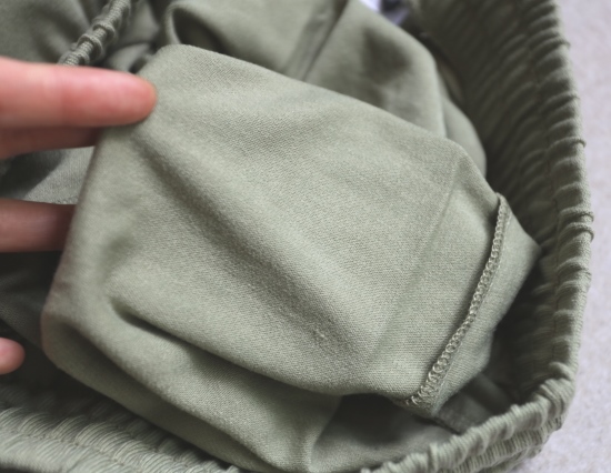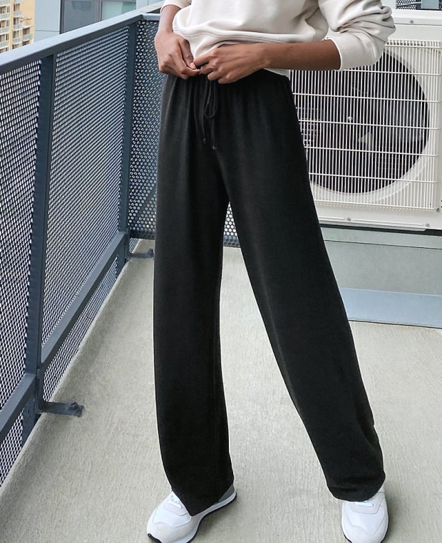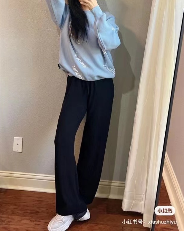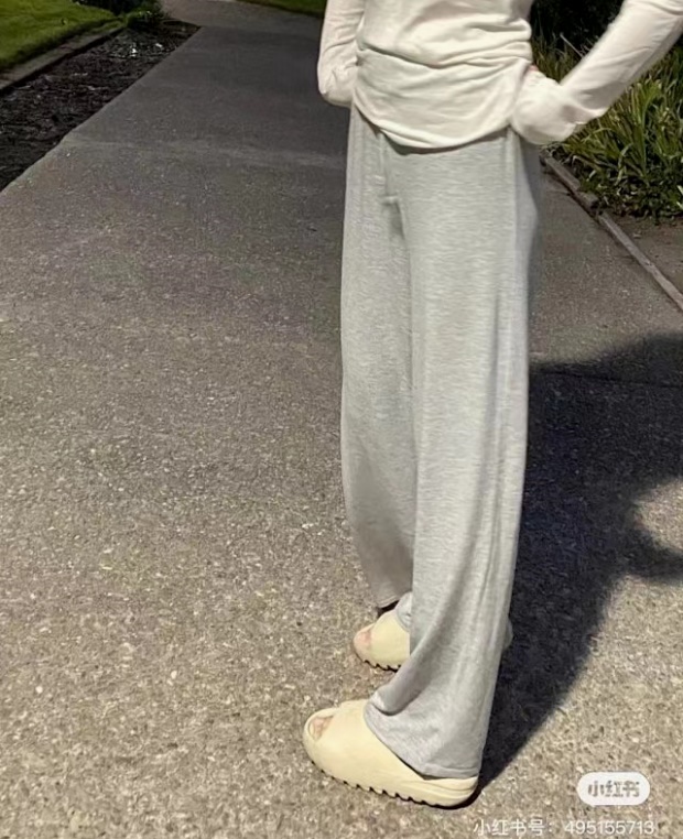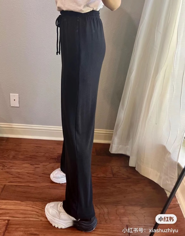 直筒裤型 宽松有垂坠感 质地偏薄 手感很细腻 不易起褶 有防静电