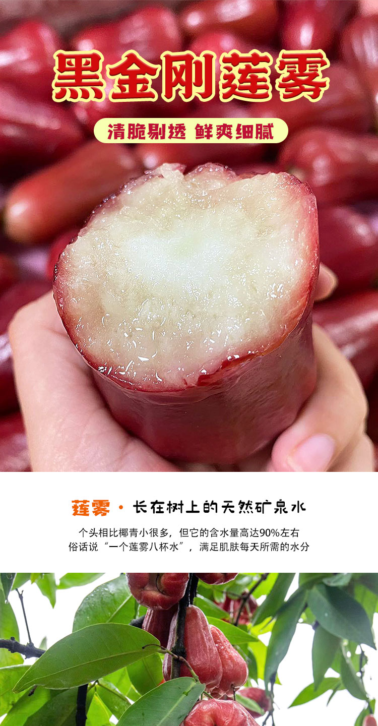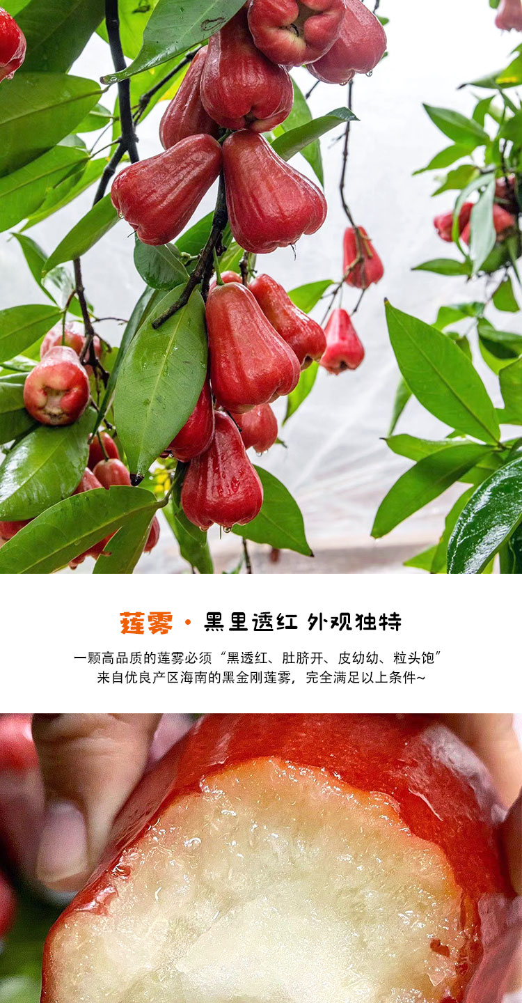 【产品规格】黑金刚莲雾:3斤中果(约14-17枚左右),3斤大果(约9-13枚左右)。