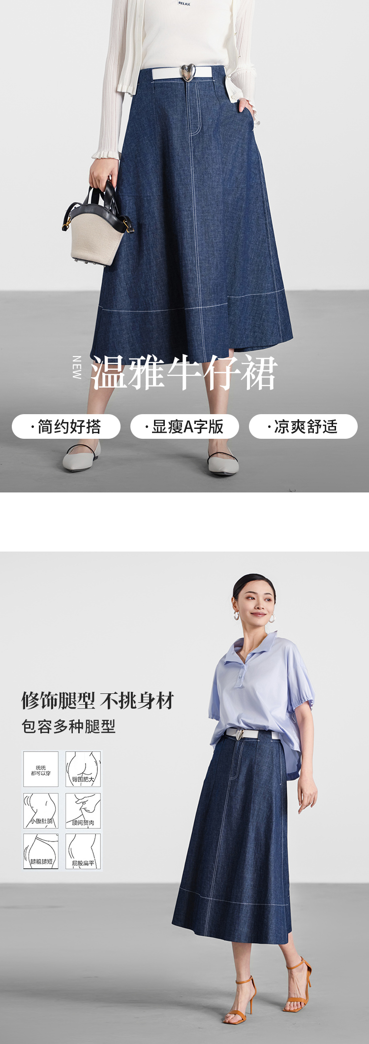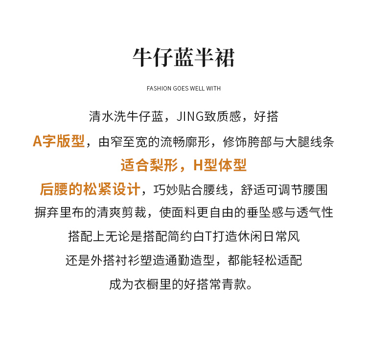 【商场同款】CNS5585 “ 温雅牛仔裙 ”后腰的松紧 A版牛仔半裙