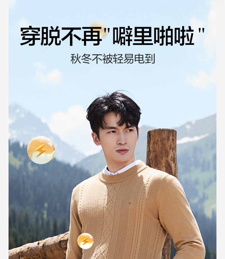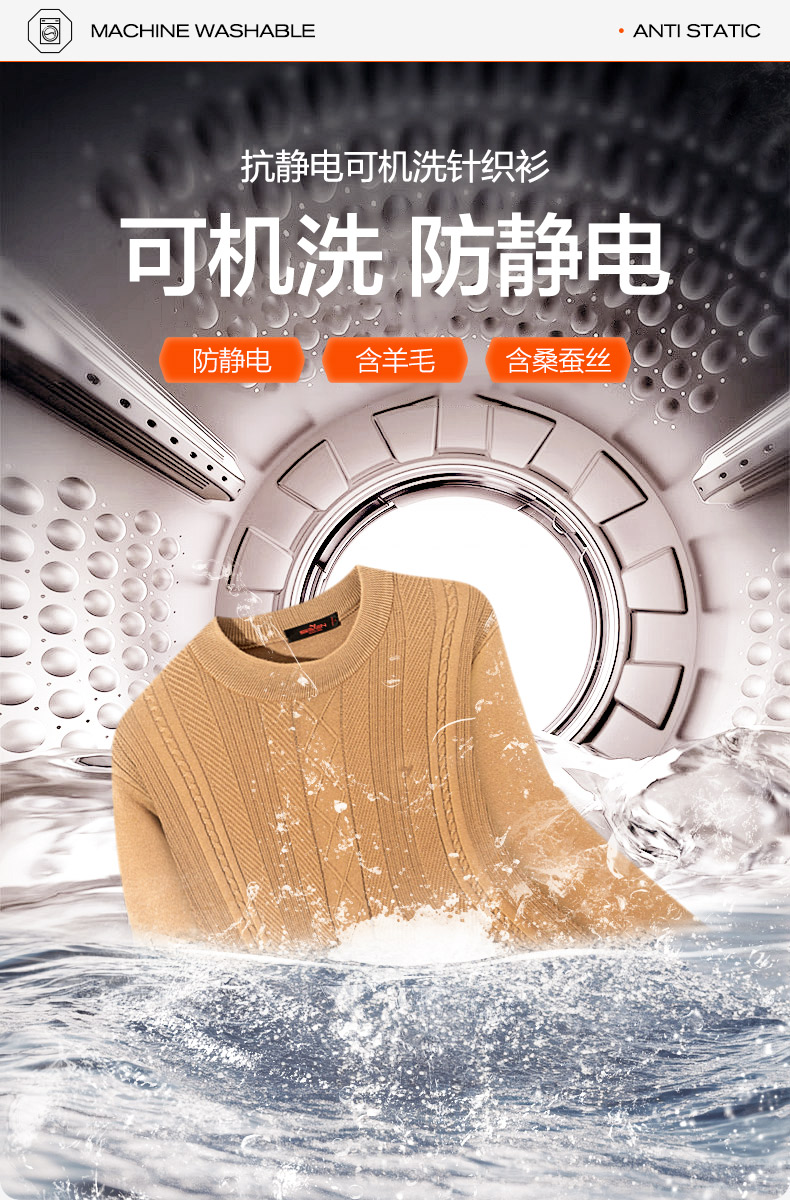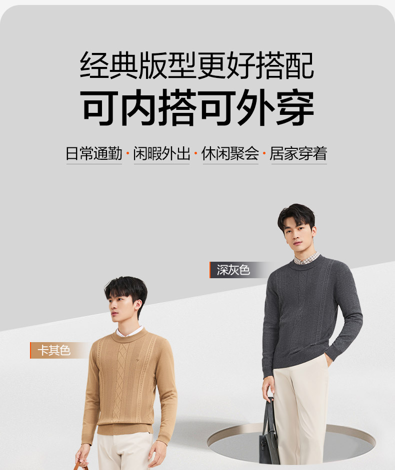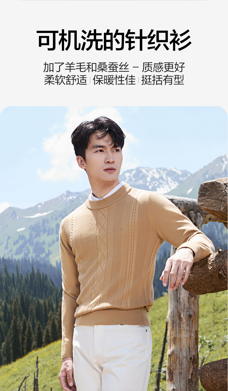 【含羊毛/蚕丝/可机洗/抗静电】柒牌男装秋季新款柔软套头薄毛衫129Y70350