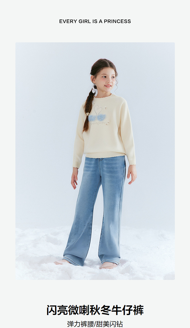 笛莎Deesha 童装女童裤子2025冬新款女童闪亮微喇秋冬牛仔裤