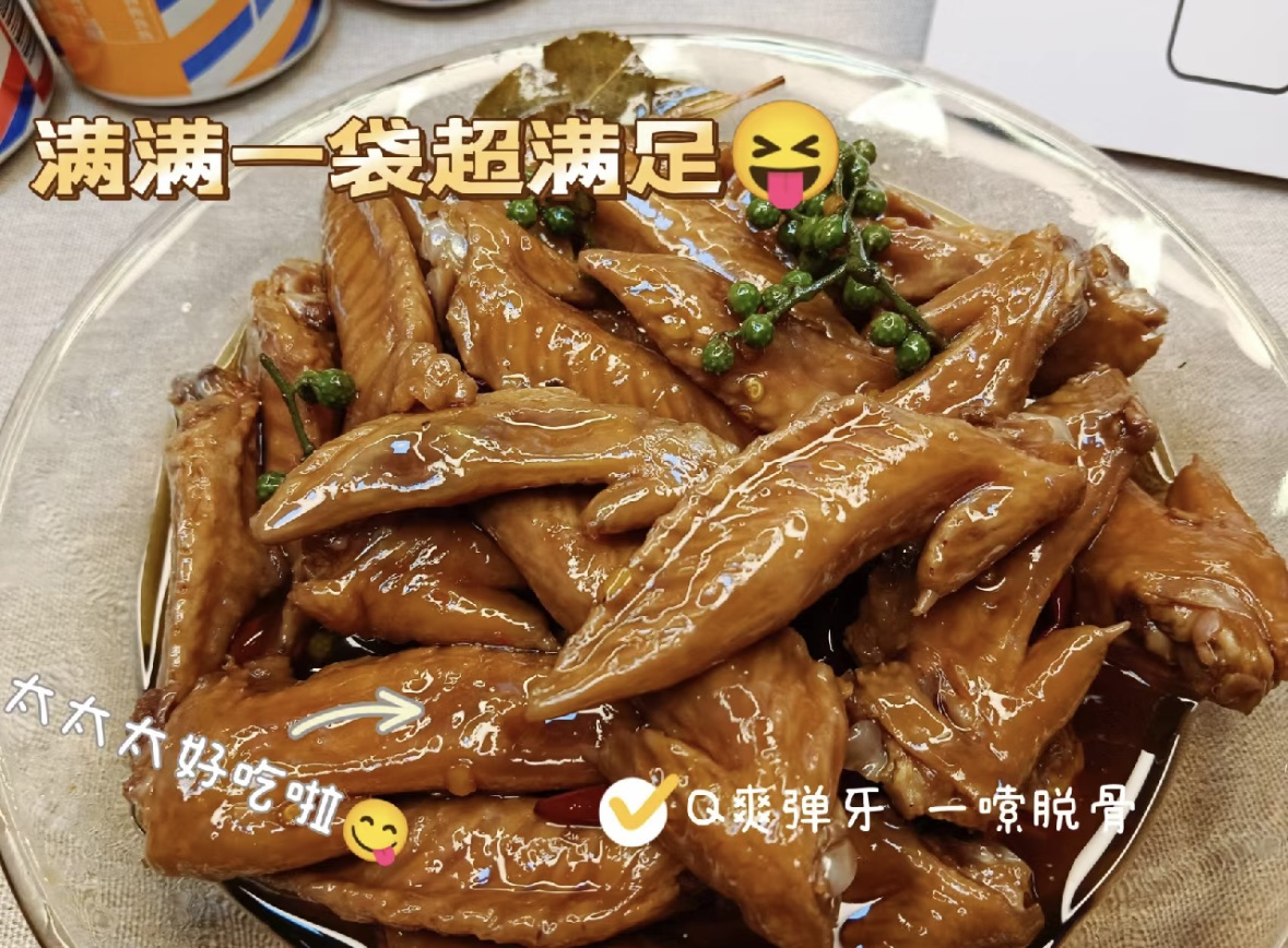 ✅好工艺——秘制卤制工艺 使用地道冷吃卤制工艺 低温冷卤,翅尖饱满吸汁入味 口感嫩滑,鲜香四溢~ 都是老师傅新鲜制作 保证翅尖独到的鲜美❣️ 吃完翅尖汤底千万别扔 泡点蔬菜更香!我喜欢放点藕片、海带之类的 好吃不浪费!