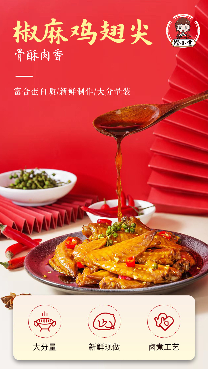 【滢小宝】椒麻鸡翅尖✅地道散养土鸡,肉质饱满紧实✅老师傅手工鲜制,低温冷卤工艺✅0添加剂0香精,全家老小都能吃✅椒麻鲜香,一点腥味没有✅220g大袋装,扎实分量过足嘴瘾!