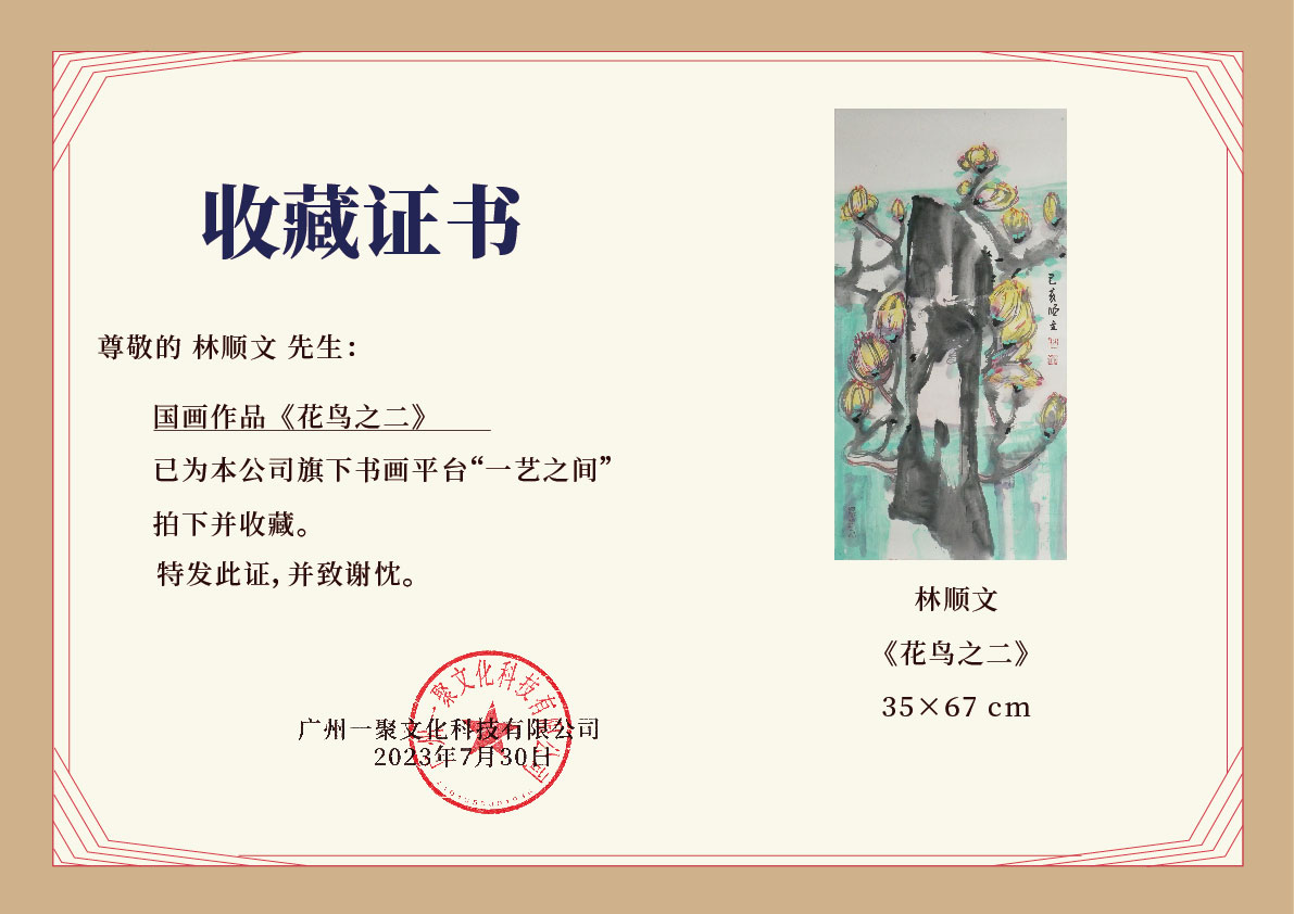 林顺文《花鸟之二》国画35CM*67CM约2平尺手绘纸本宣纸作品【原作编号GH0416】