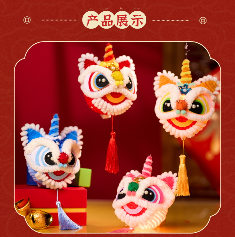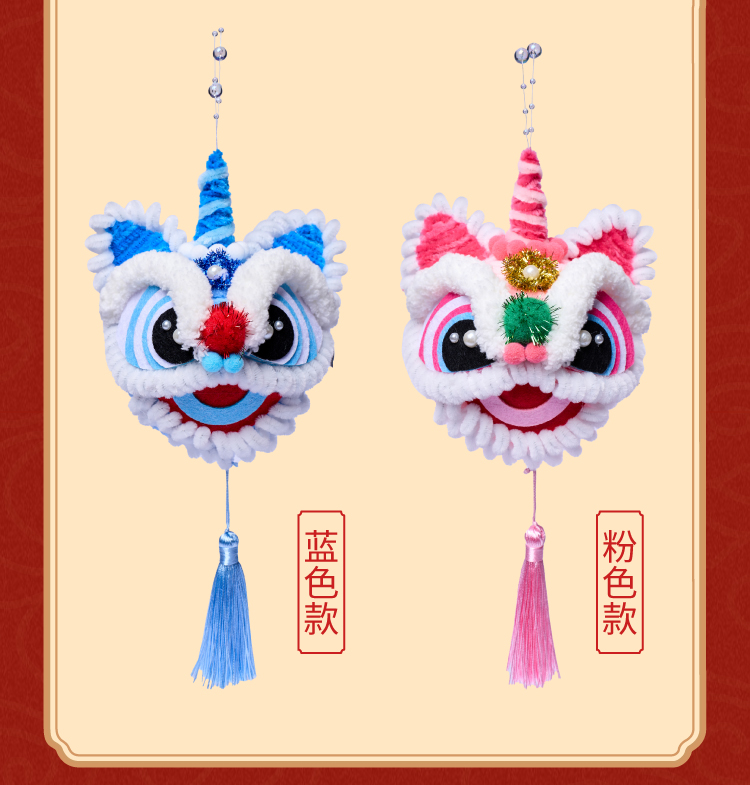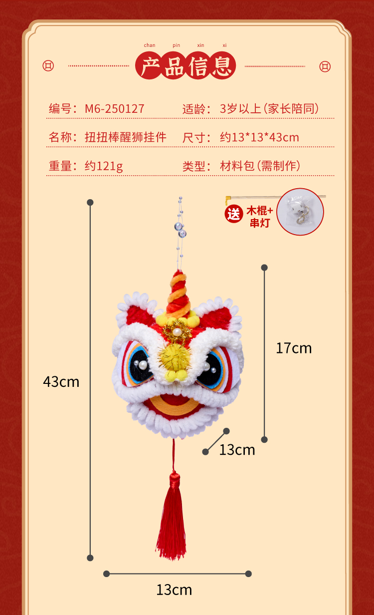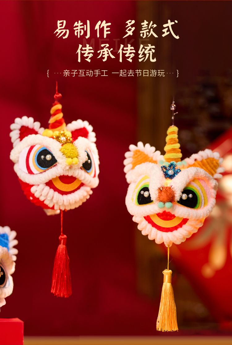 新年春节元旦扭扭棒醒狮挂件手工diy儿童制作材料幼儿园装饰蛇年