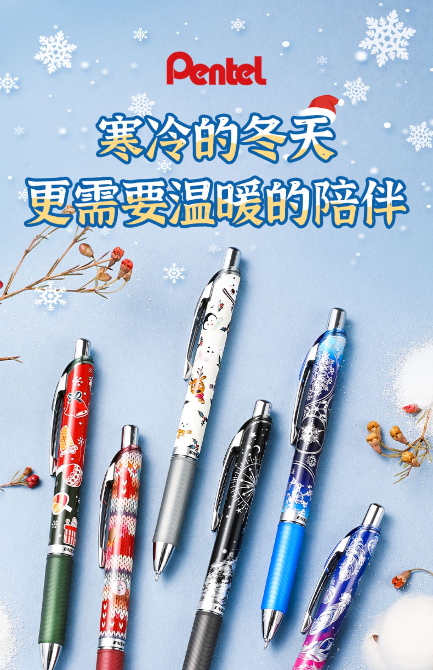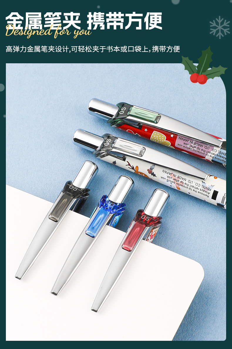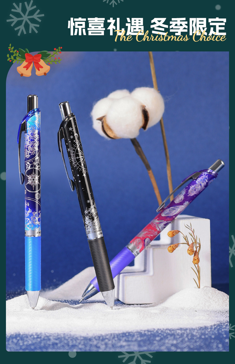 派通Pentel雪季限定速干中性笔圣诞0.5冬季BLN75WT按动针管大容量