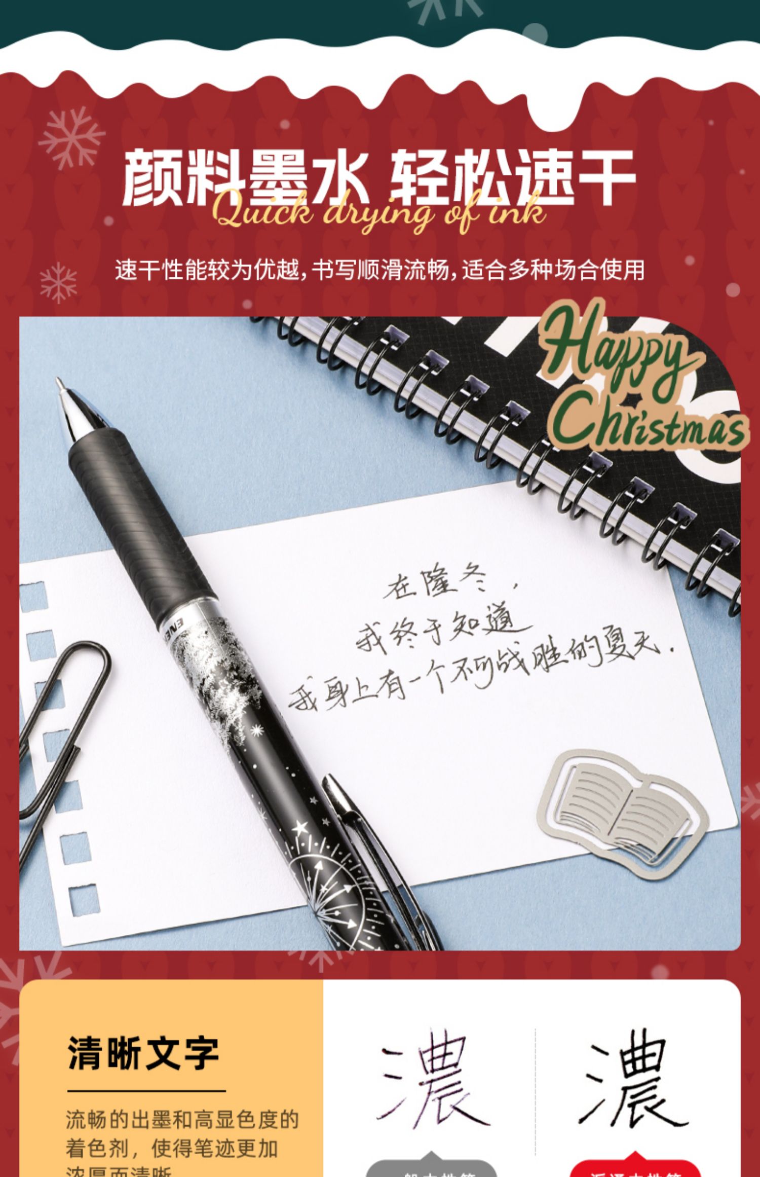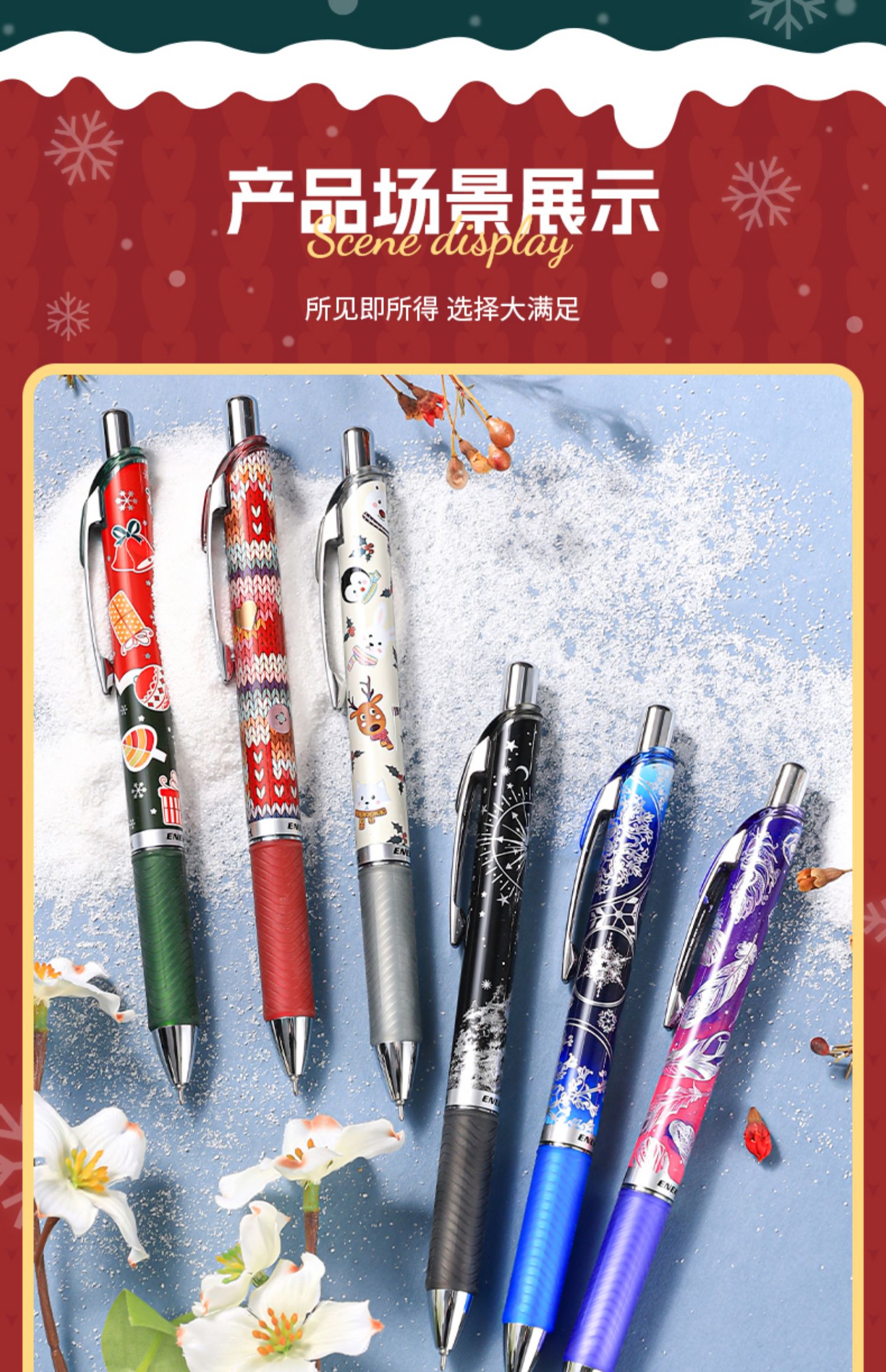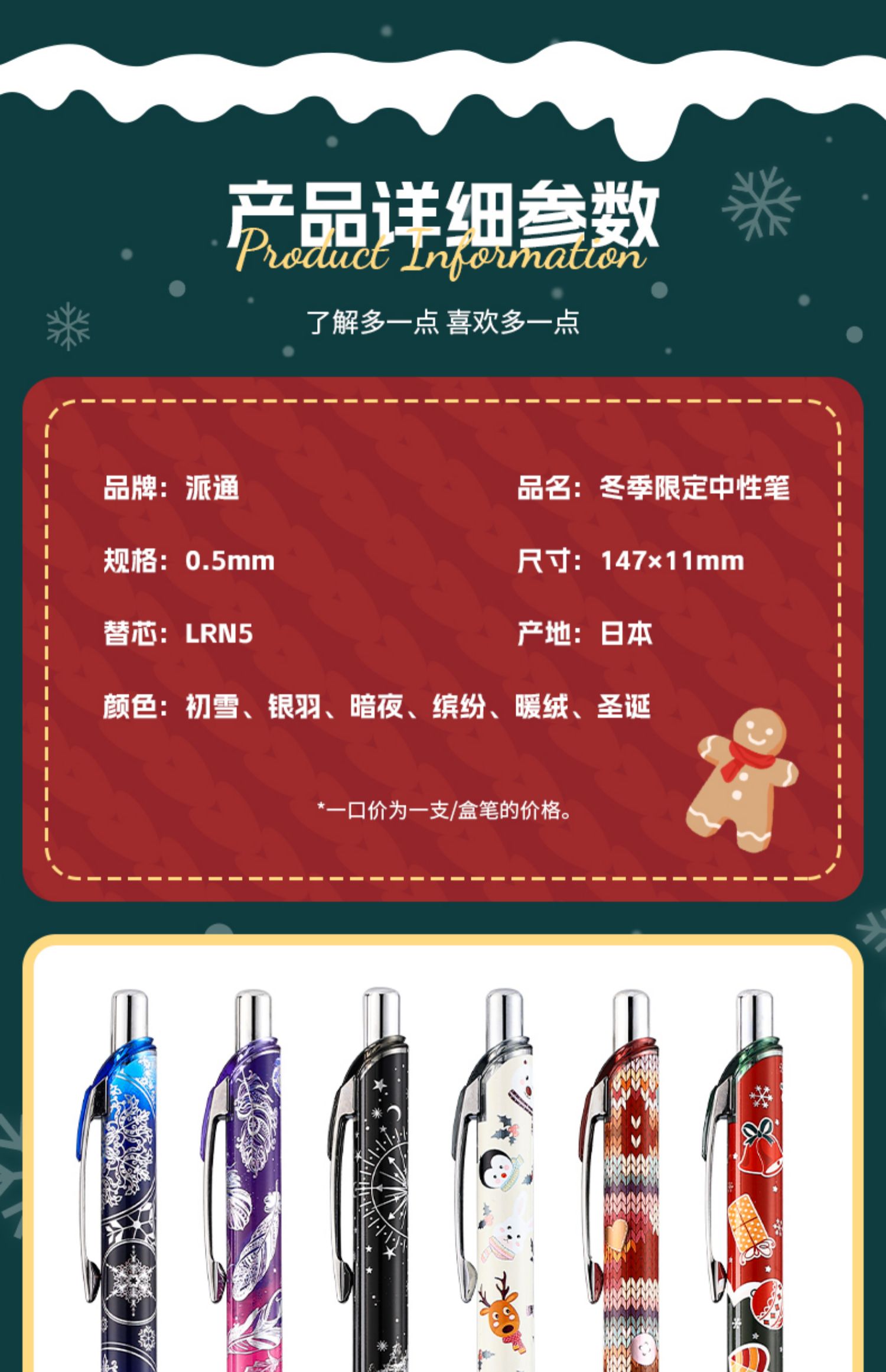 派通Pentel雪季限定速干中性笔圣诞0.5冬季BLN75WT按动针管大容量