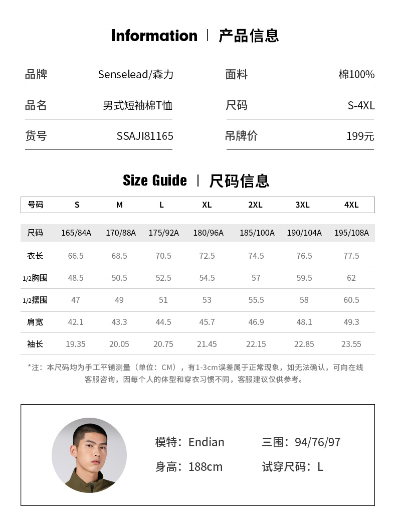 Senselead森力/男式短袖棉T恤 SSAJI81165