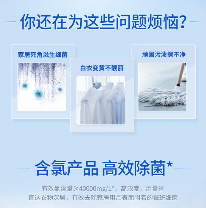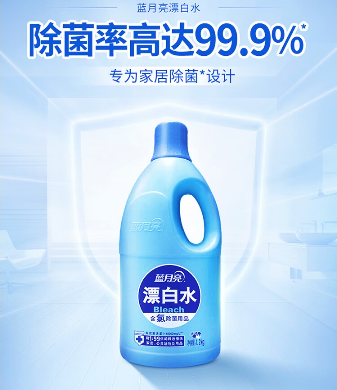 【双十一 爆品】蓝月亮 漂白水 1.2kg/瓶 除菌率99.9% 高浓度含氯 去渍漂白