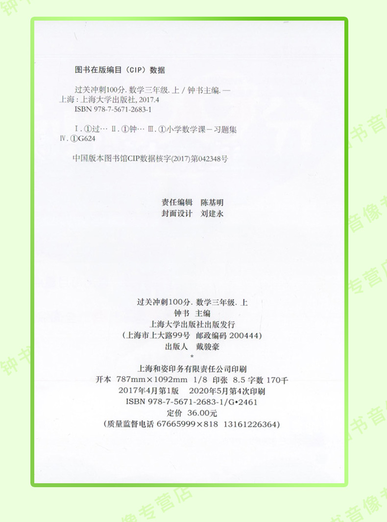 钟书金牌 正版 过关冲刺100分 数学 3年级/三年级上 上海大学出版社