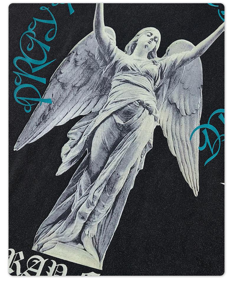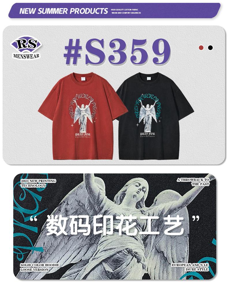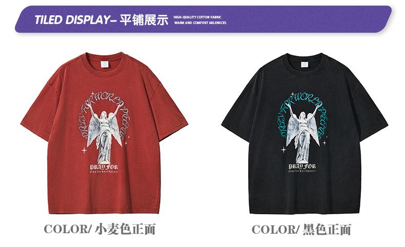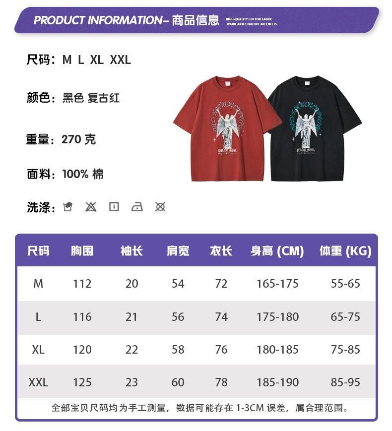 RS男装|270克美式复古水洗做旧天使数码印花宽松男ins潮牌短袖t恤
