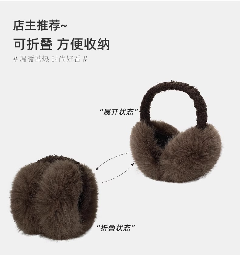 【软糯绵柔材质❗️显脸小又百搭】毛绒耳罩女款冬季可折叠保暖棕咖色耳捂子东北防冻护耳套耳包。ja