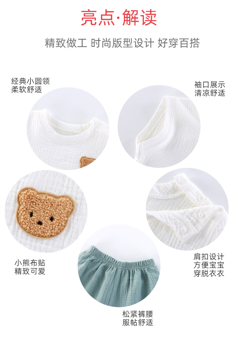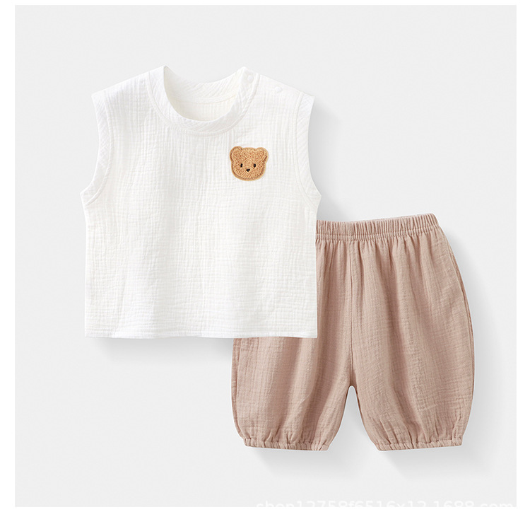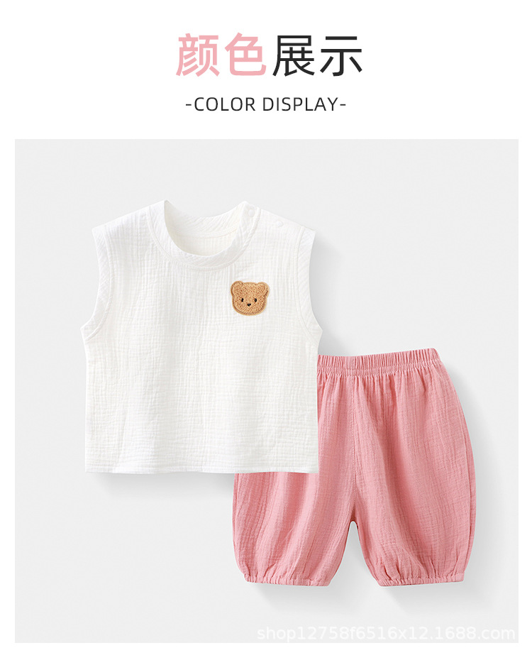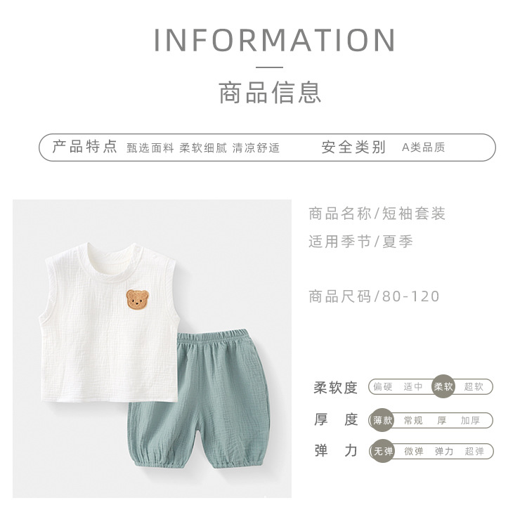 【安全无异味!耐洗不变形】儿童夏季套装韩版宽松新款舒适透气棉纱拼色背心短裤外穿两件套。xb
