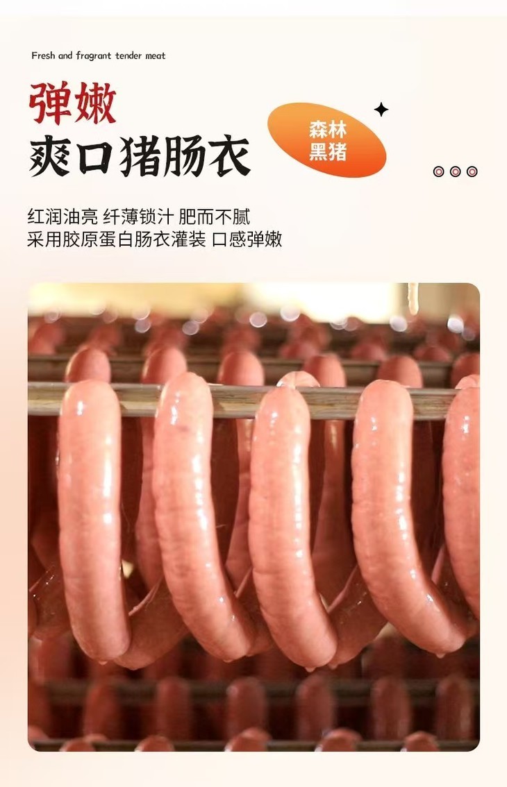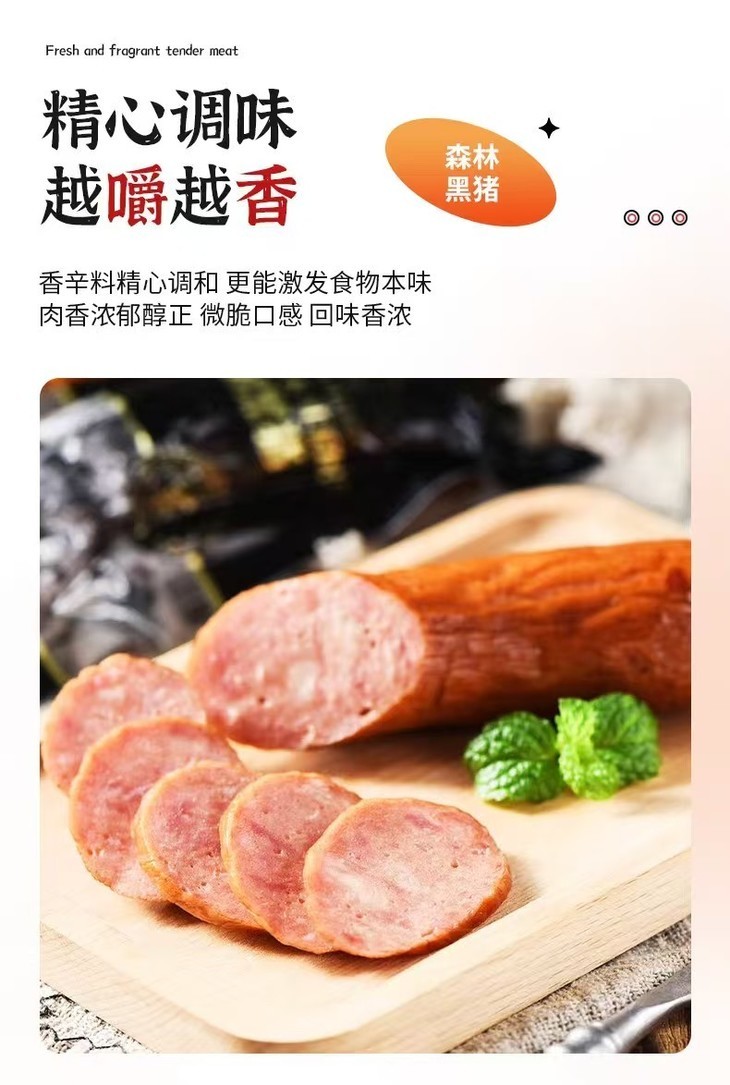 这种烟熏味不是靠香精调出来的,而是控温控时的传统熏烤工艺,让红肠在保留原汁原味的同时,多了层次丰富的烟火气。