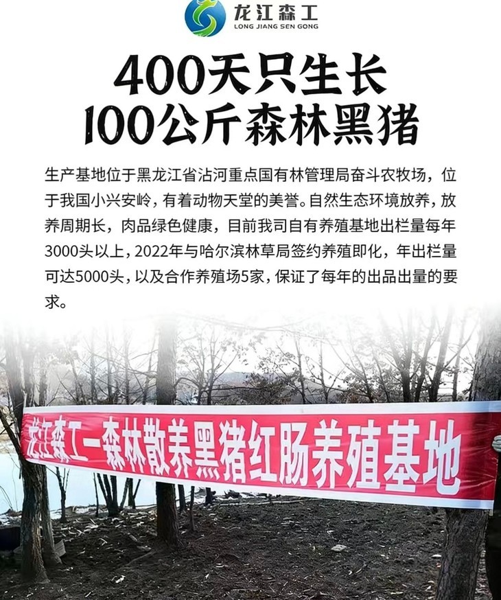 目前,品牌自有养殖基地年出栏量达3000头以上,2022年与哈尔滨林草局签约合作后,年出栏量可达5000头,再加上5家合作养殖场,从源头保证了每一批红肠的肉源稳定与品质可控。