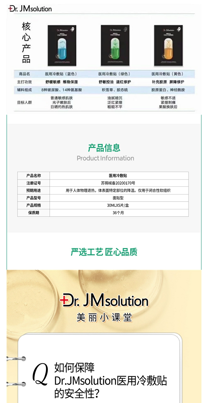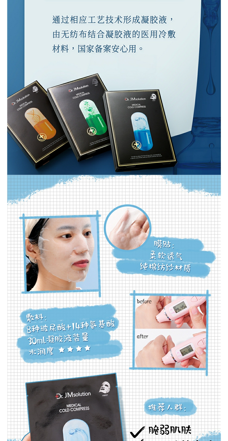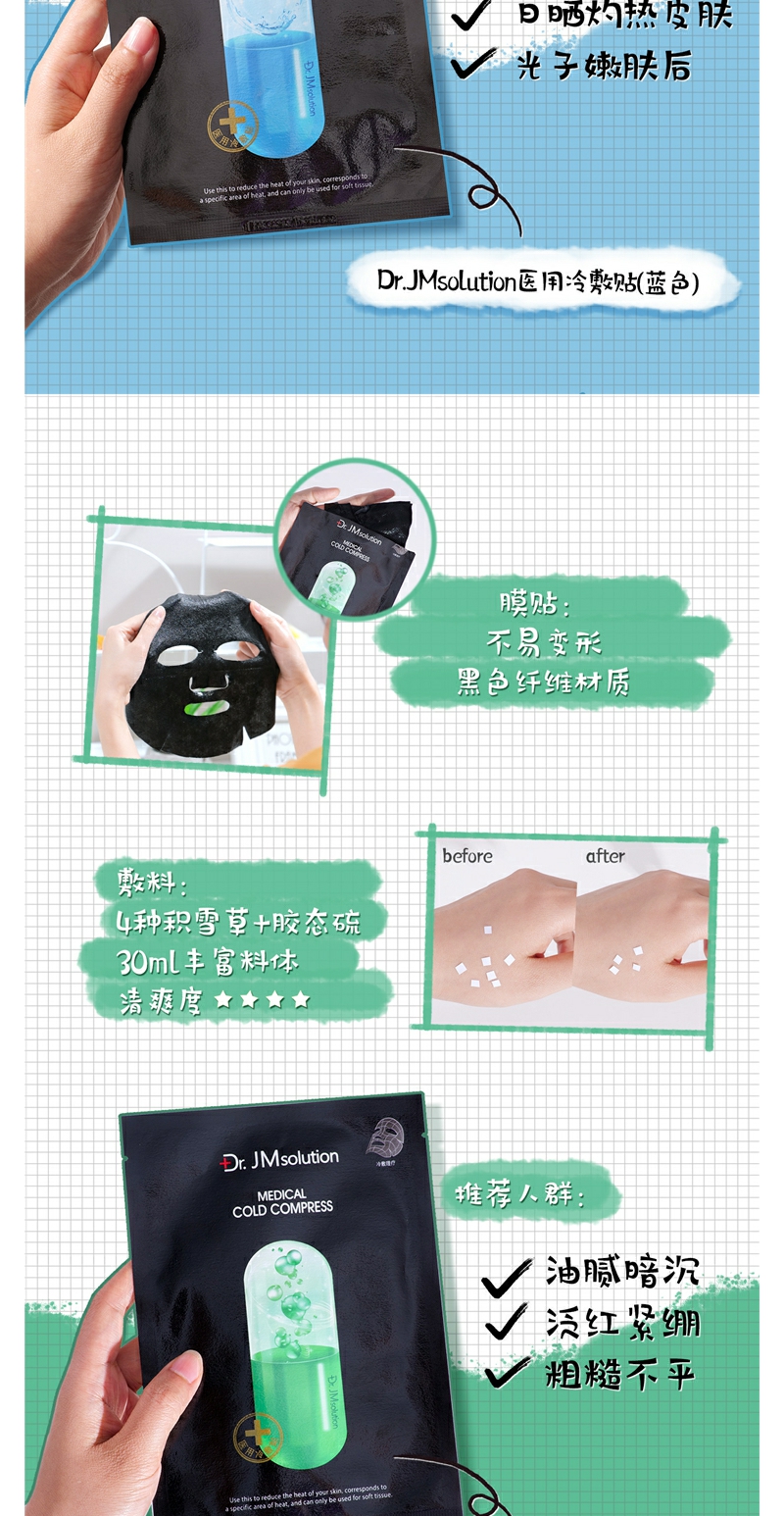 【YZ】韩国JM Solution冷敷贴JM面膜蓝绿黄药丸面膜5片保湿补水提亮