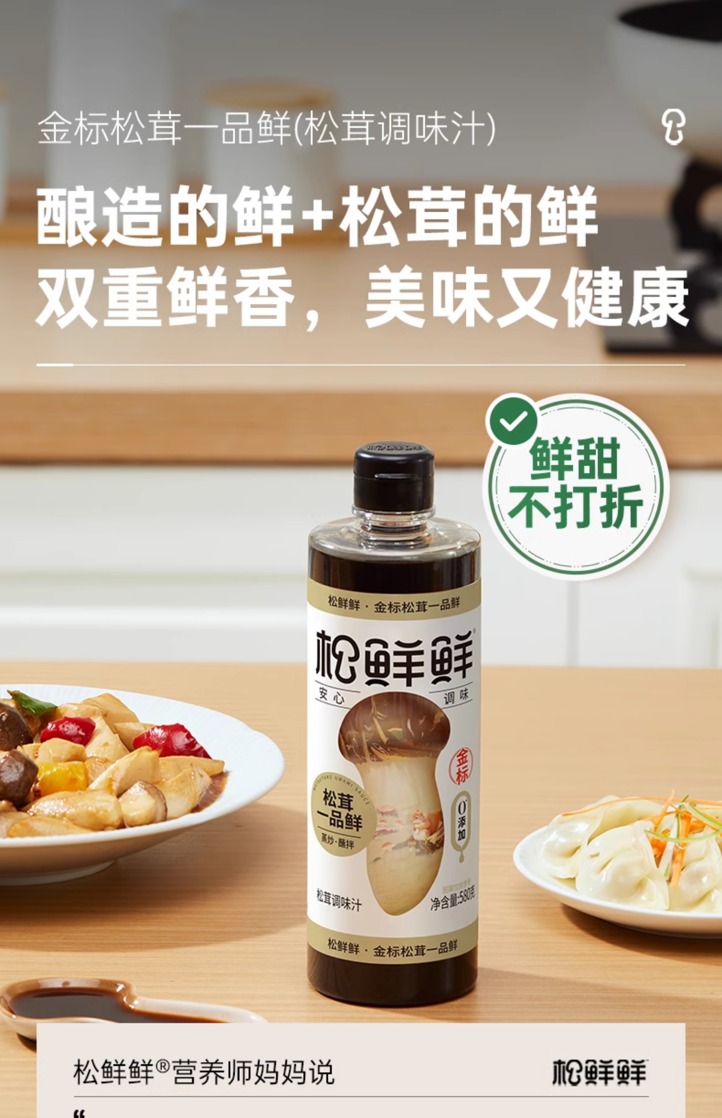 松鲜鲜金标松茸一品鲜 代替生抽炒菜鲜凉拌家用百搭调味 商品缩略图0 松鲜鲜金标松茸一品鲜 代替生抽炒菜鲜凉拌家用百搭调味 商品缩略图1 松鲜鲜金标松茸一品鲜 代替生抽炒菜鲜凉拌家用百搭调味 商品缩略图2 松鲜鲜金标松茸一品鲜 代替生抽炒菜鲜凉拌家用百搭调味 商品缩略图3