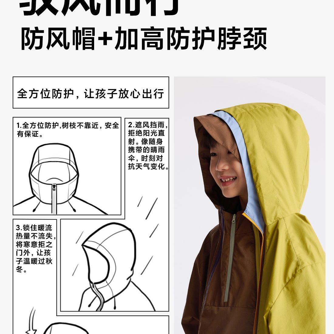fx-咕噜日记马拉风儿童连帽冲锋衣亲子款2025秋季男童女童防泼水外套PQWT2525