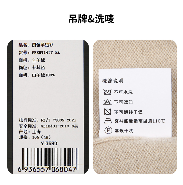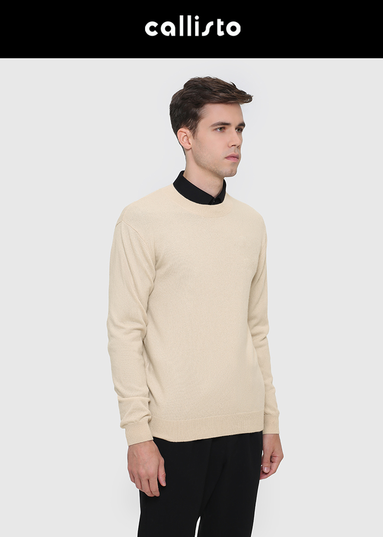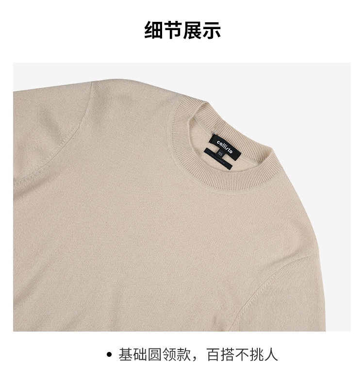 callisto卡其色全羊绒圆领羊毛衫 FRKNW143T