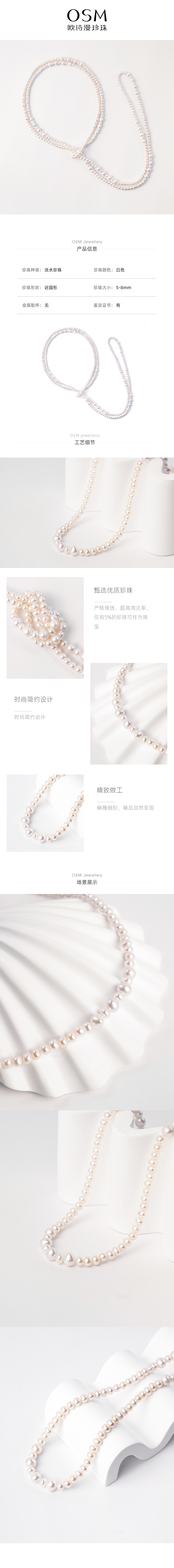 欧诗漫珠宝 淡水无核珍珠毛衣链多层160cm长款珍珠项链 美毅36080