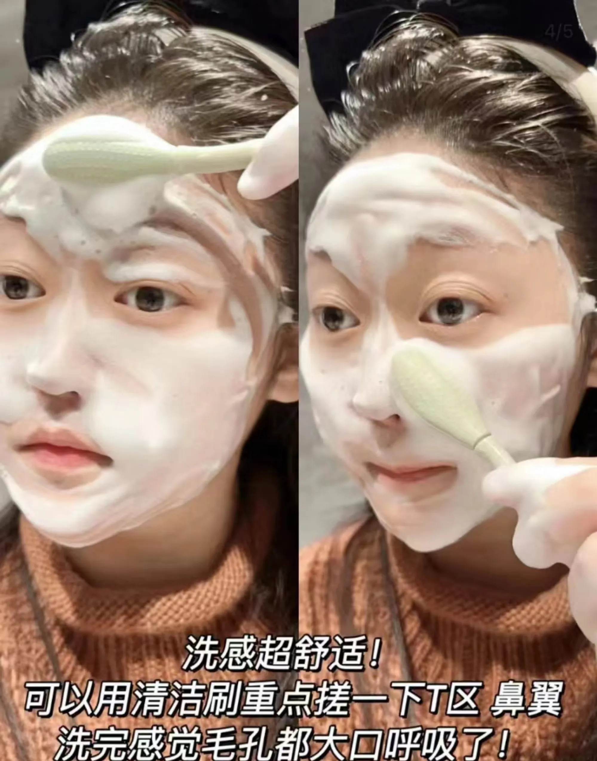 糯叽叽的膏状质地 轻轻揉一下泡沫超丰富绵密 上脸温和的像扎进云朵一样,超治愈的感觉 冲一下就很干净不会假滑,不会拔干。