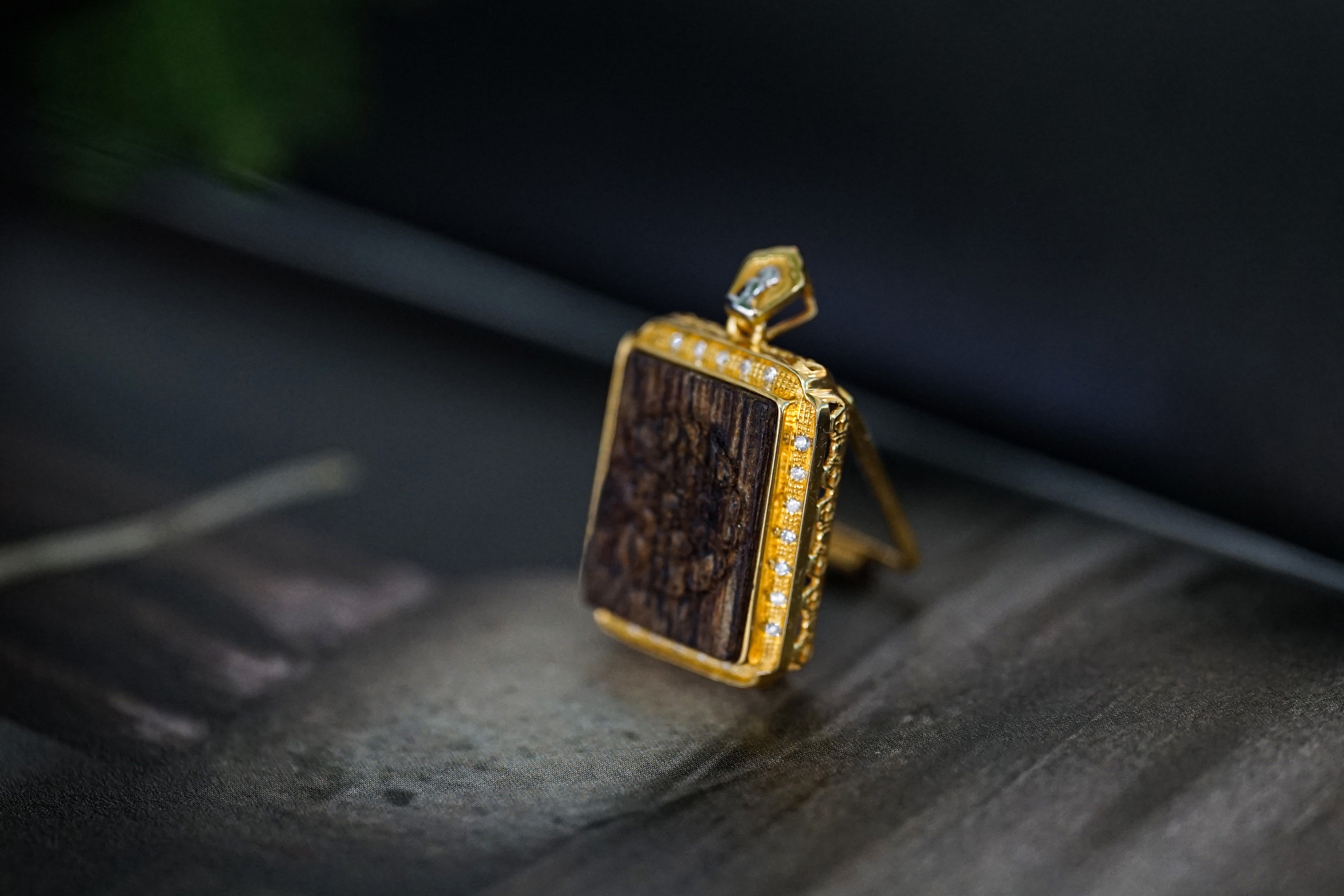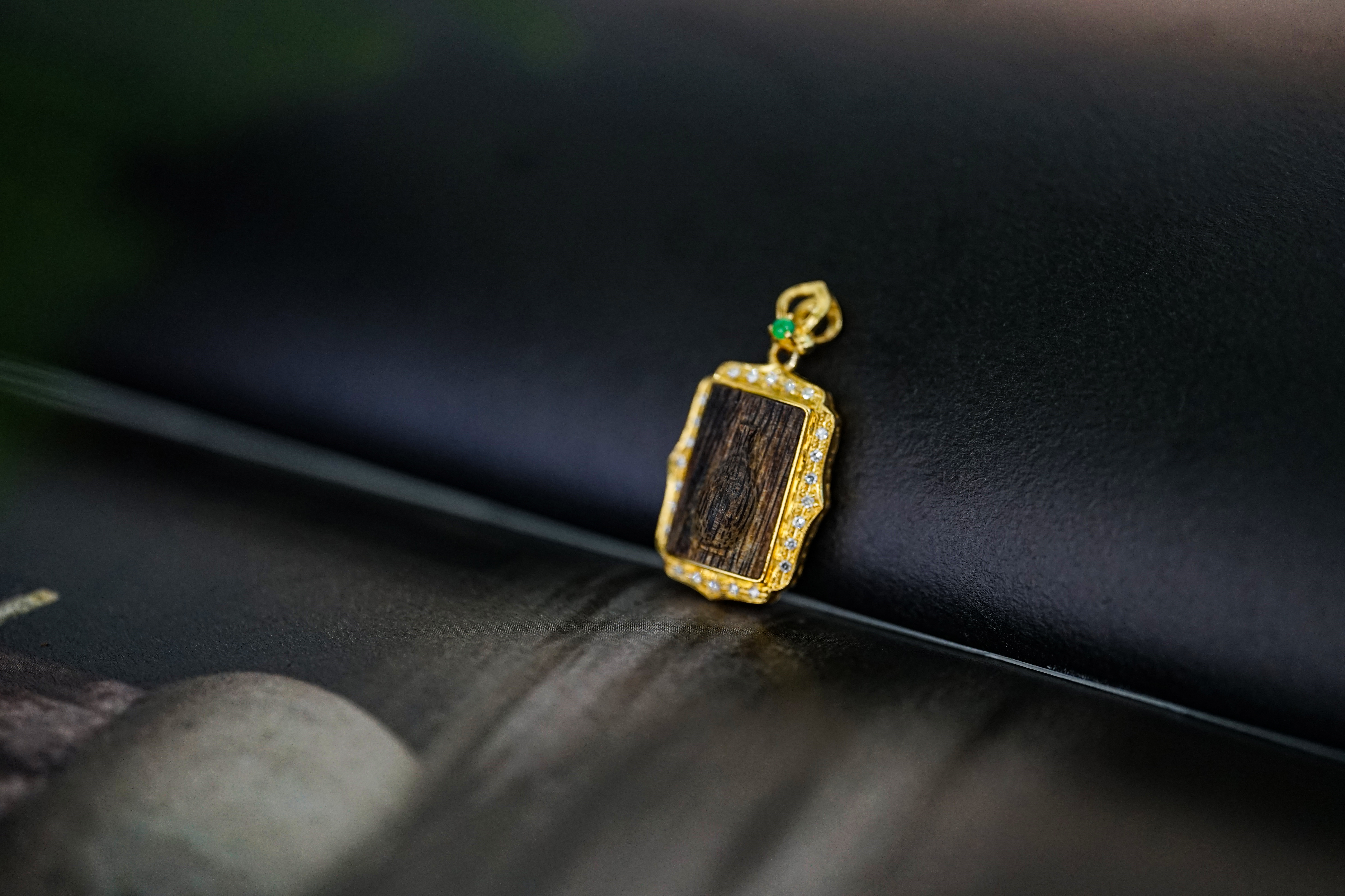18K金沉香方牌吊坠 特价