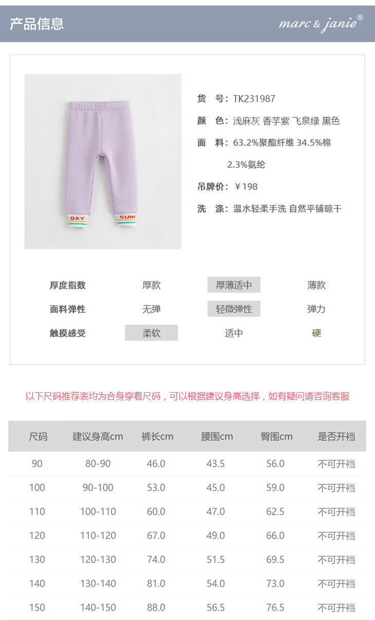 【黑科技蓄热】马克珍妮秋冬新款 女童加绒弹力打底裤231987