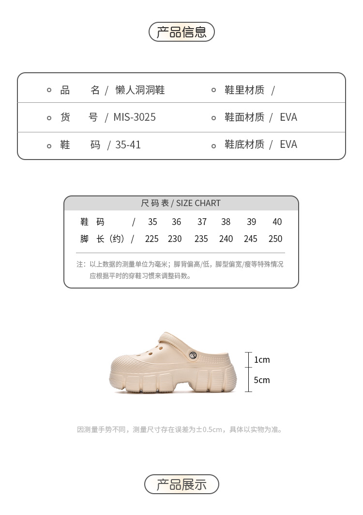 【YW】无忧购休闲懒人厚底增高洞洞鞋3025(截单后7天发货)