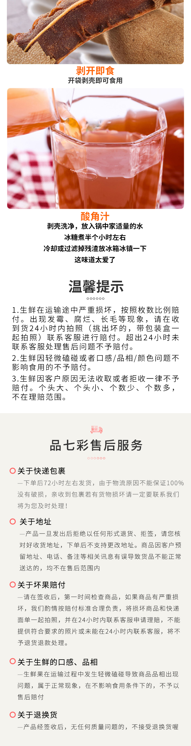 甜酸角是初级农产品,没有添加剂防腐剂打药,带壳发货的,不剥也看不到坏的,所以收到吃的时候注意,剥开不能吃的坏的拍照给我们售后.