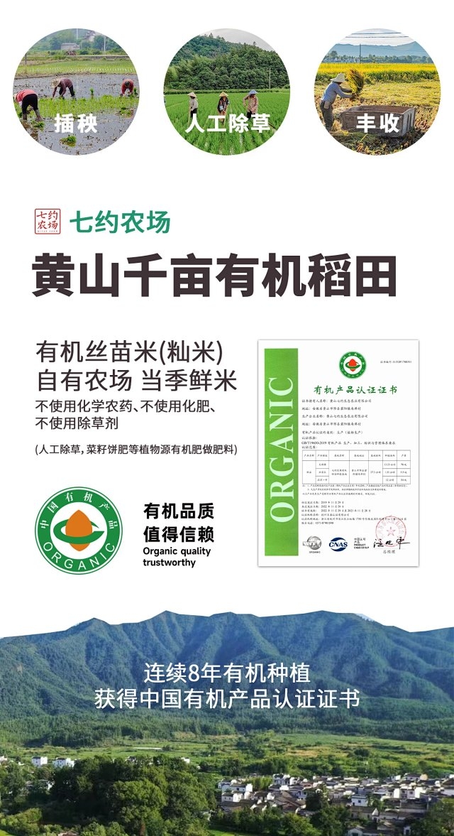 丨有机丨丝苗米 也叫籼米 七约农场 有机种植 山泉水灌溉 无农药化肥除草剂