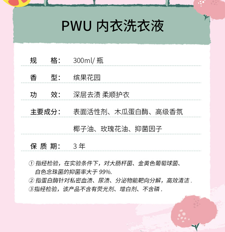 PWU朴物大美内衣洗衣液(缤果花园)300ml