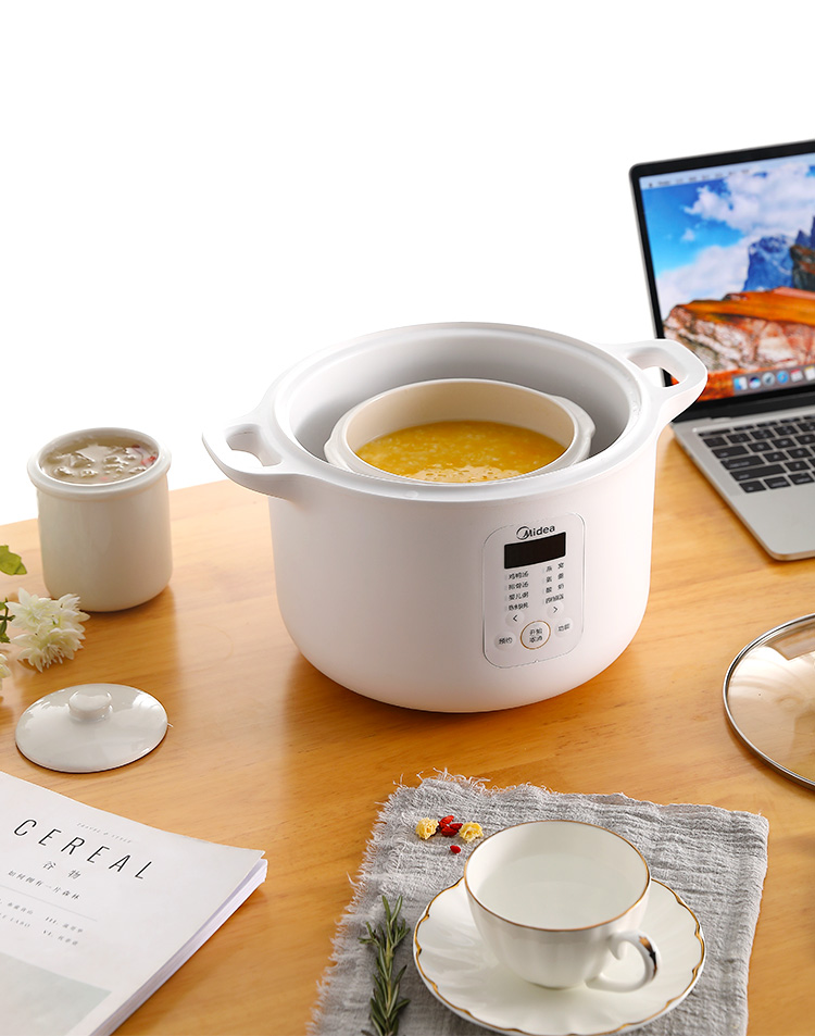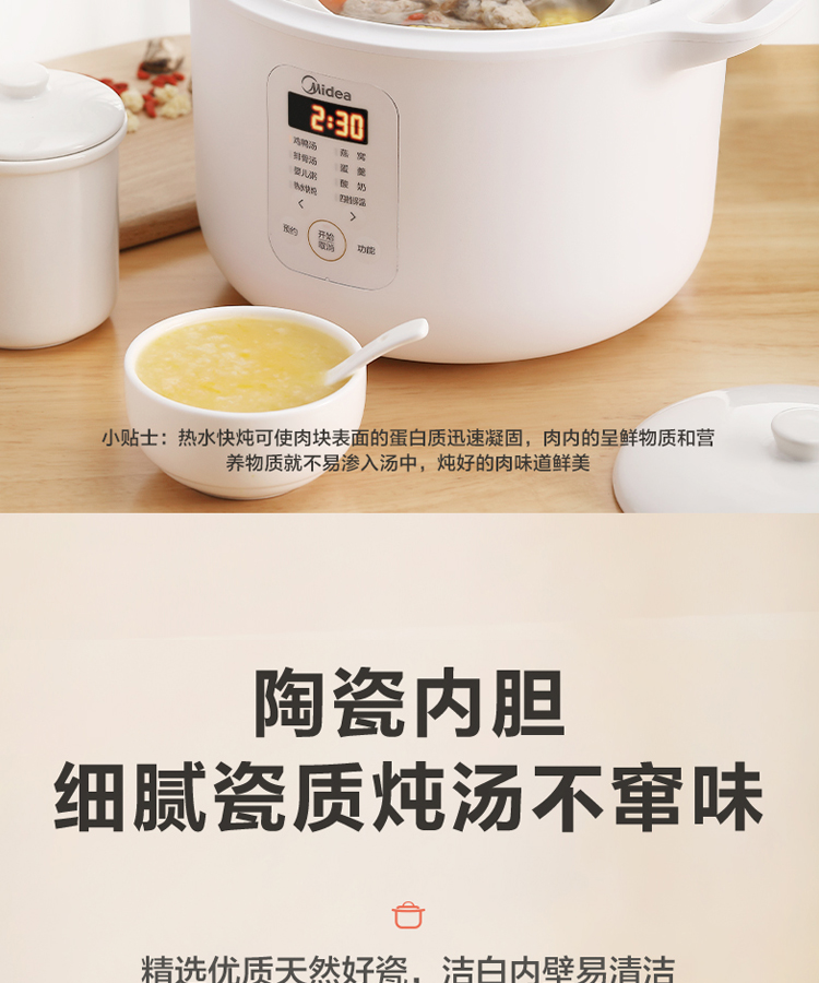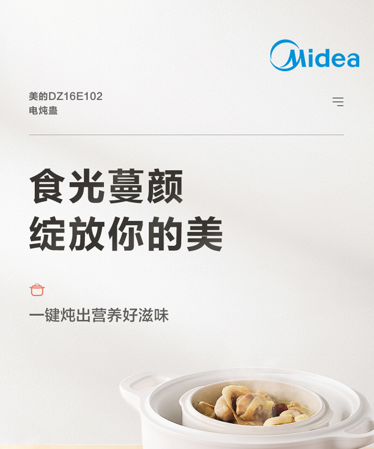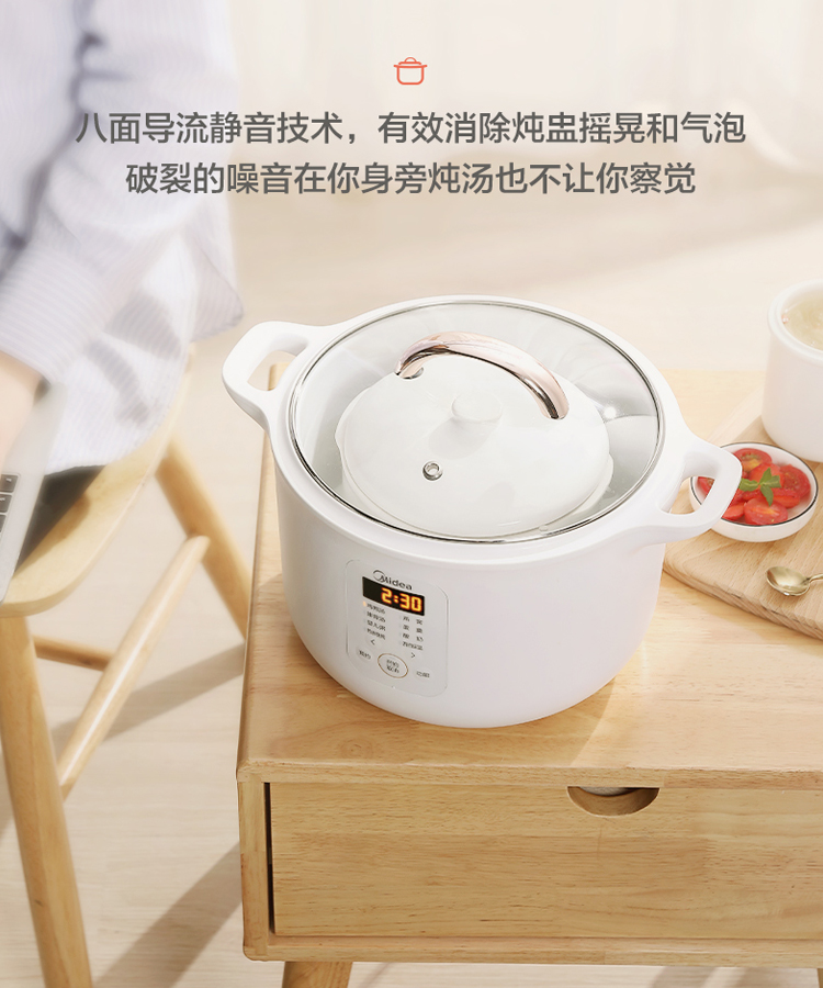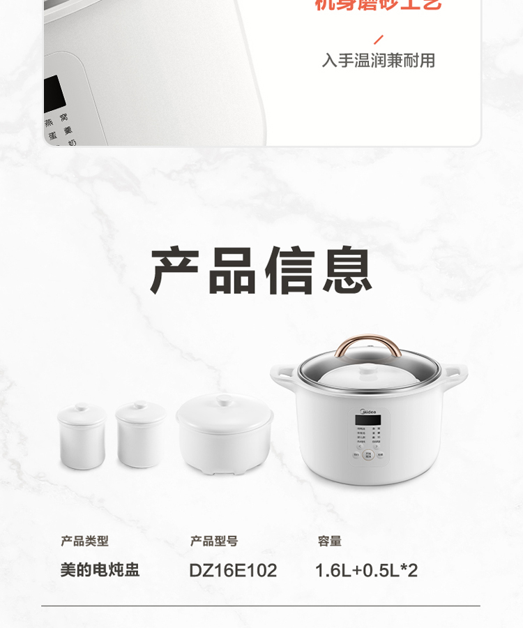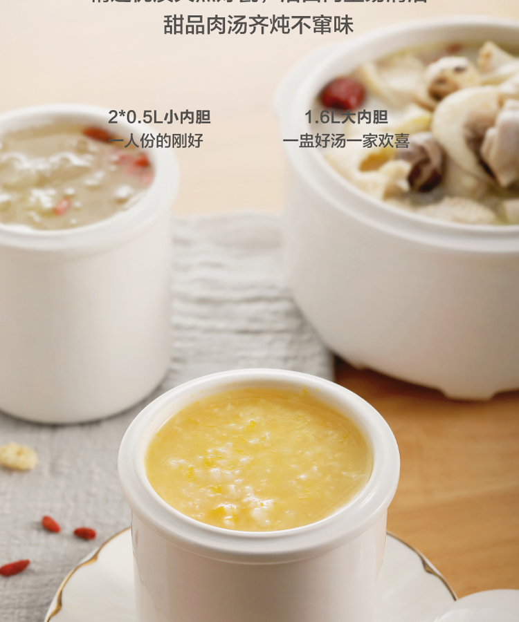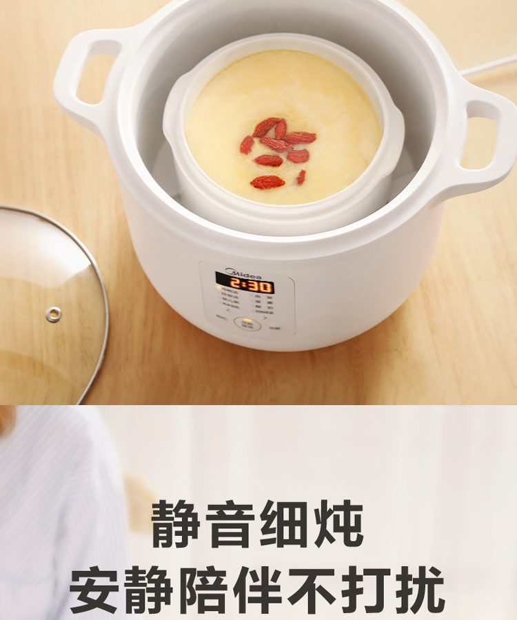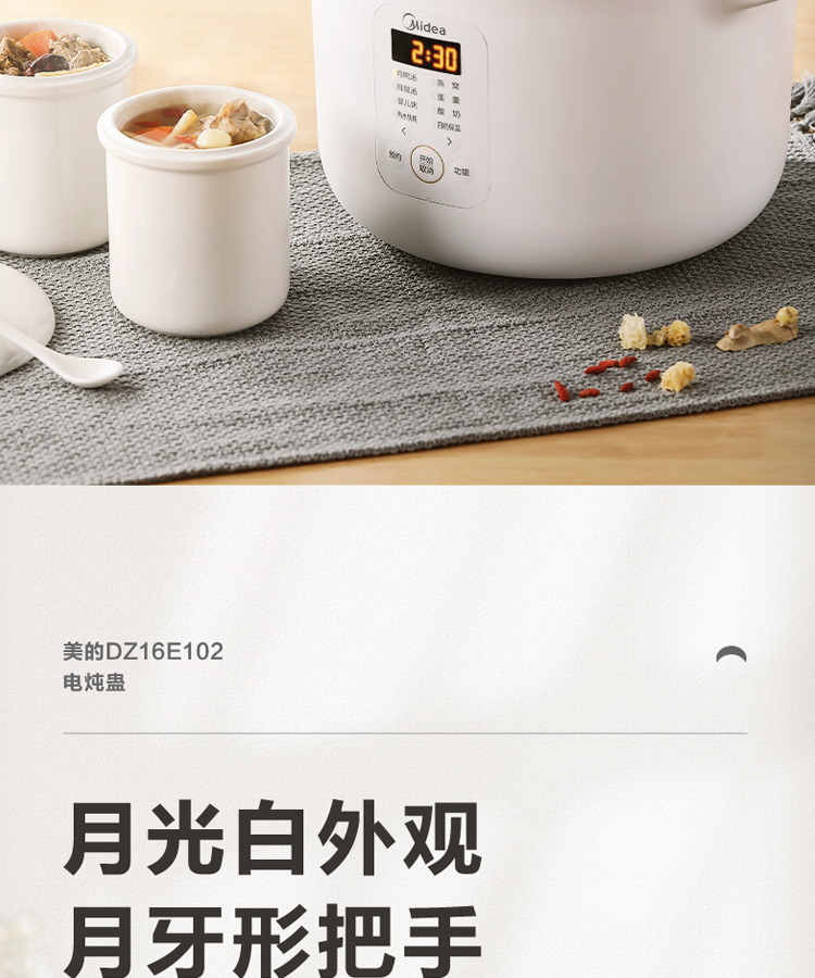 美的(Midea)电炖盅电炖锅陶瓷燕窝隔水炖盅多功能煮粥煲汤锅1.6L白瓷3胆 MD-DZ16E102