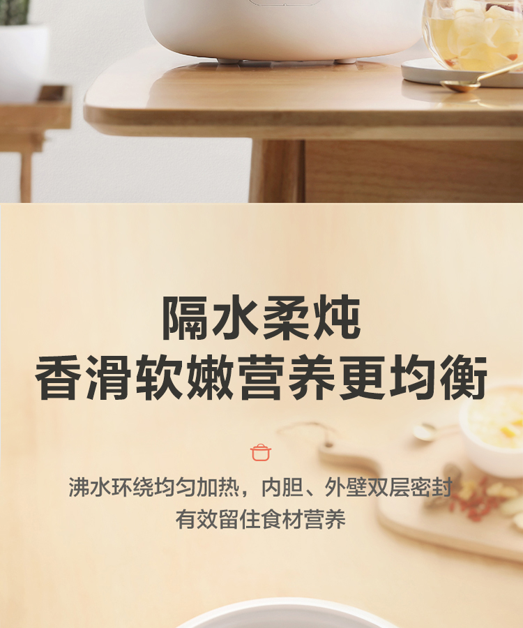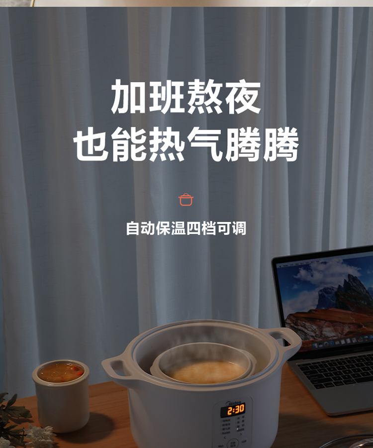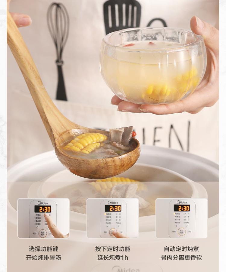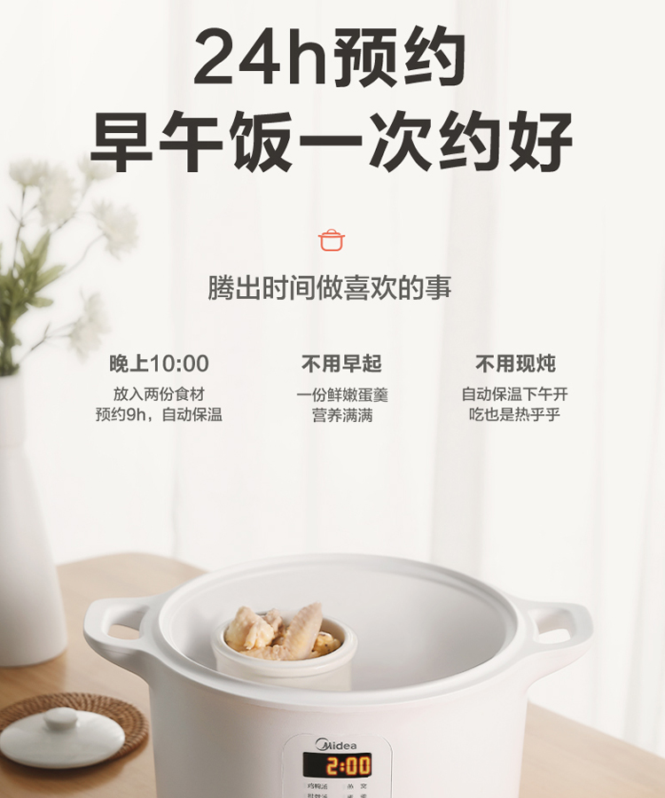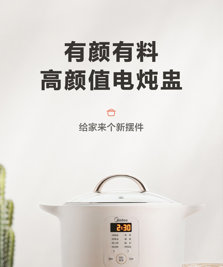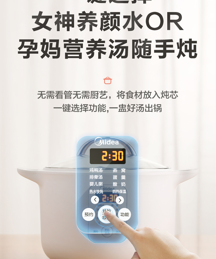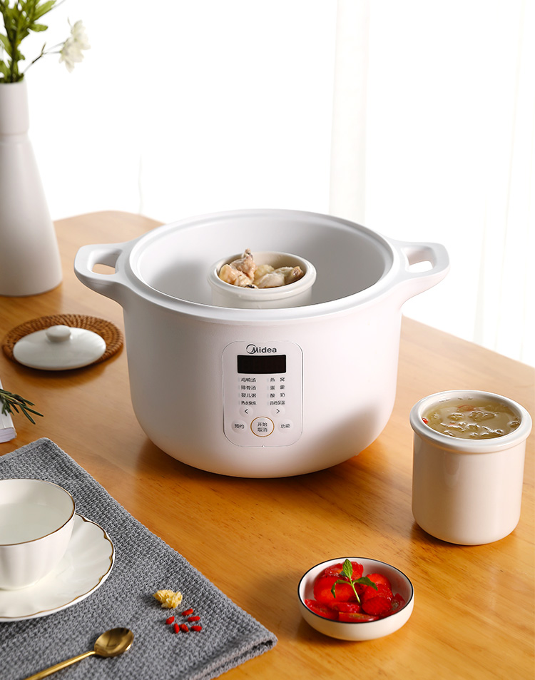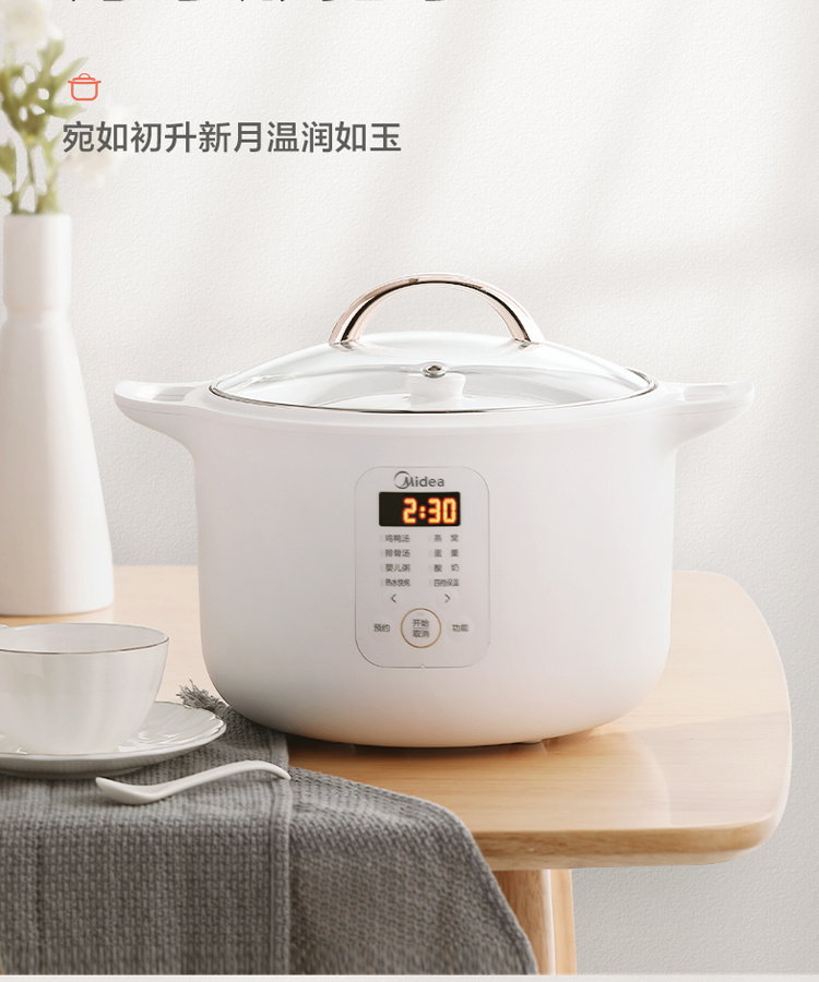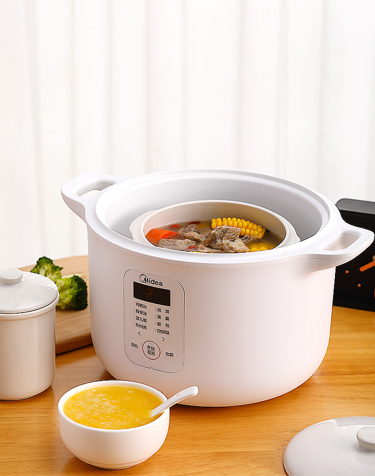 美的(Midea)电炖盅电炖锅陶瓷燕窝隔水炖盅多功能煮粥煲汤锅1.6L白瓷3胆 MD-DZ16E102