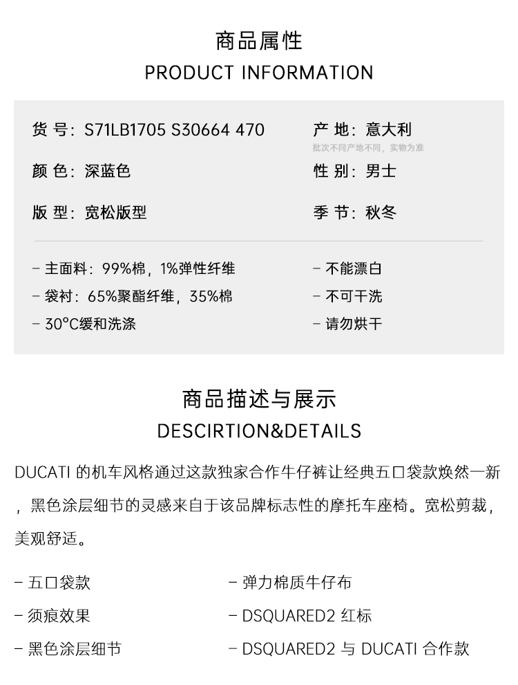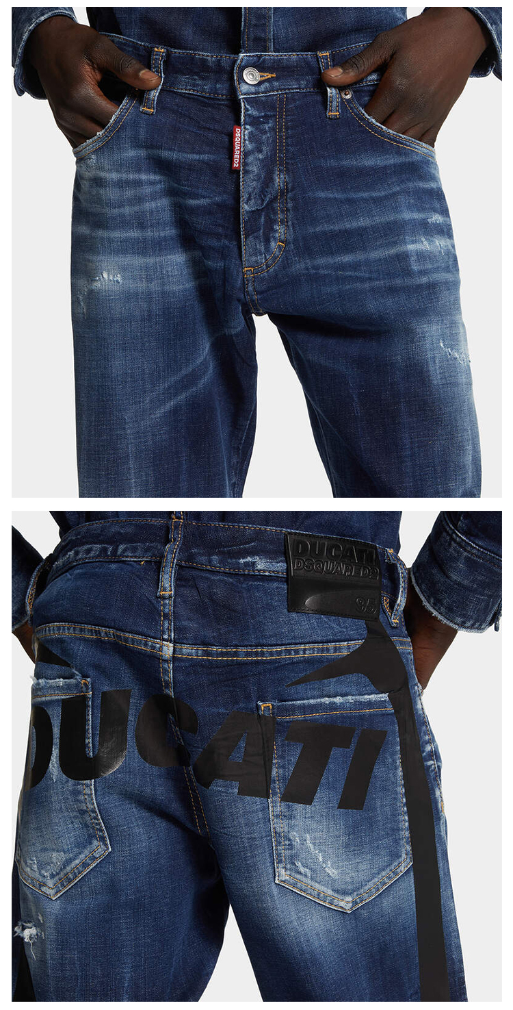 DSQUARED2 男士字母徽标印花棉质休闲牛仔裤 深蓝色 S71LB1705 S30664 470