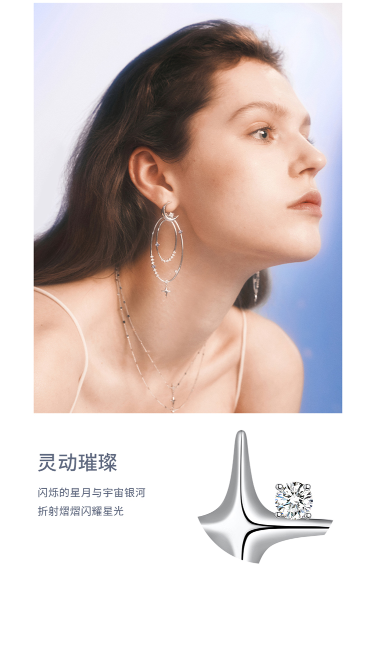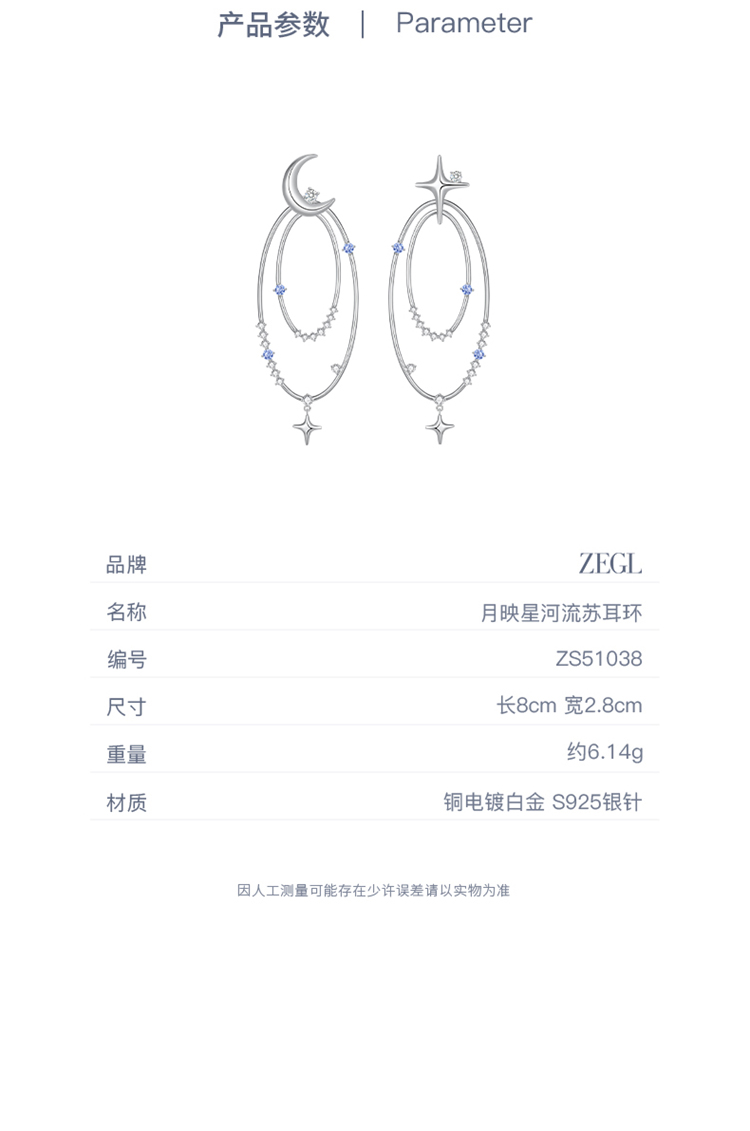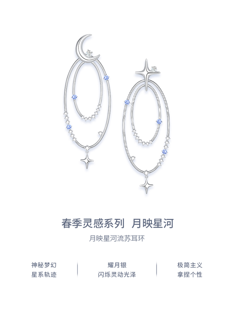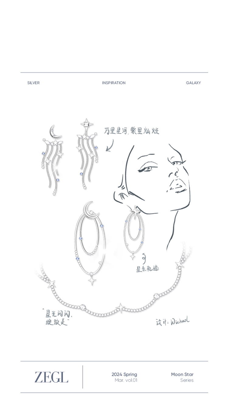 ZEGL设计师月映星河系列月亮星星耳环女2024新款流苏耳钉银针耳饰