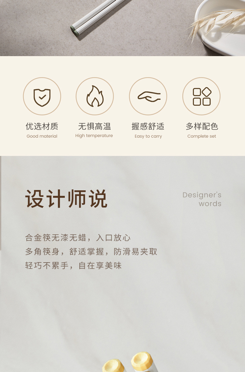 「5双装!合金筷」筷子家用耐温防滑一人一筷颜值合金筷酒店厨房餐具餐饮用具