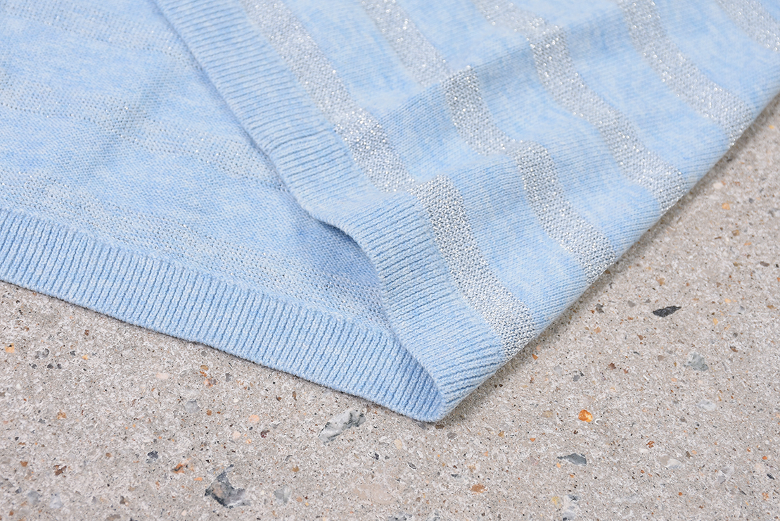 薄款 横纹棉质 胸前刺绣 大V领毛衣/针织衫 T-1071